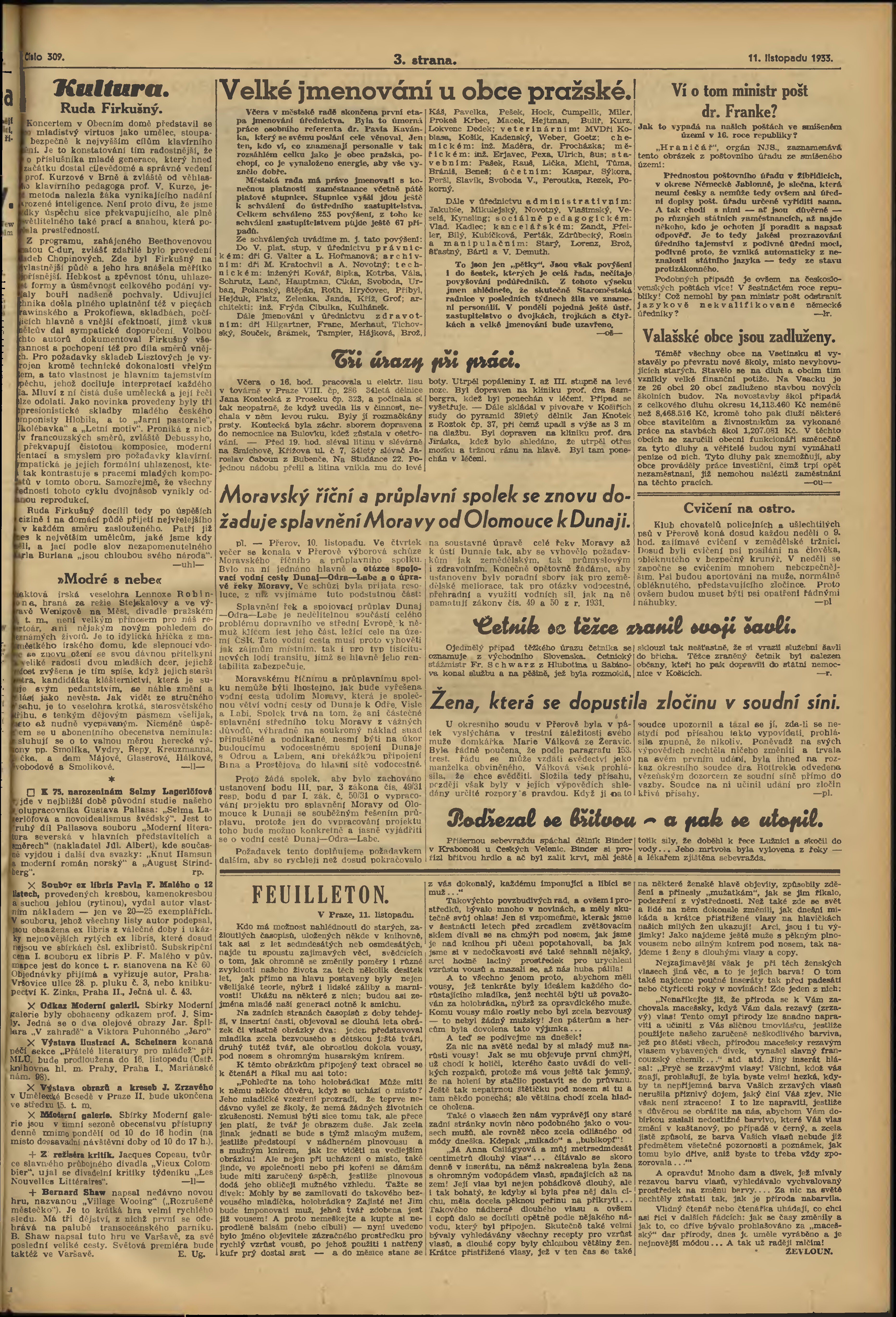 * Datum vydání výtisku: 11.11.1933 Číslo výtisku: 309 Poznámky k výtisku: večerní vydání;