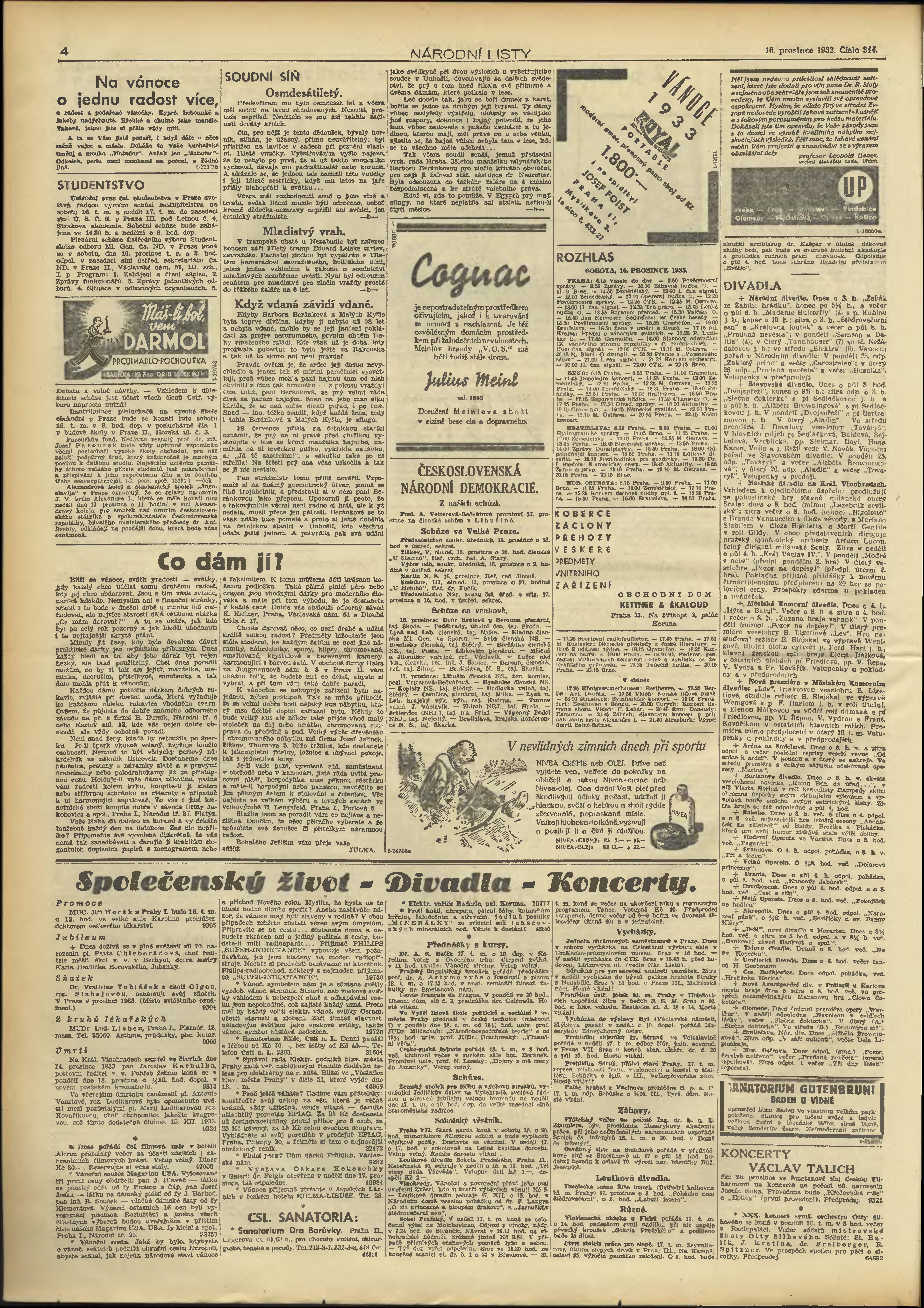 * Datum vydání výtisku: 16.12.1933 Číslo výtisku: 344