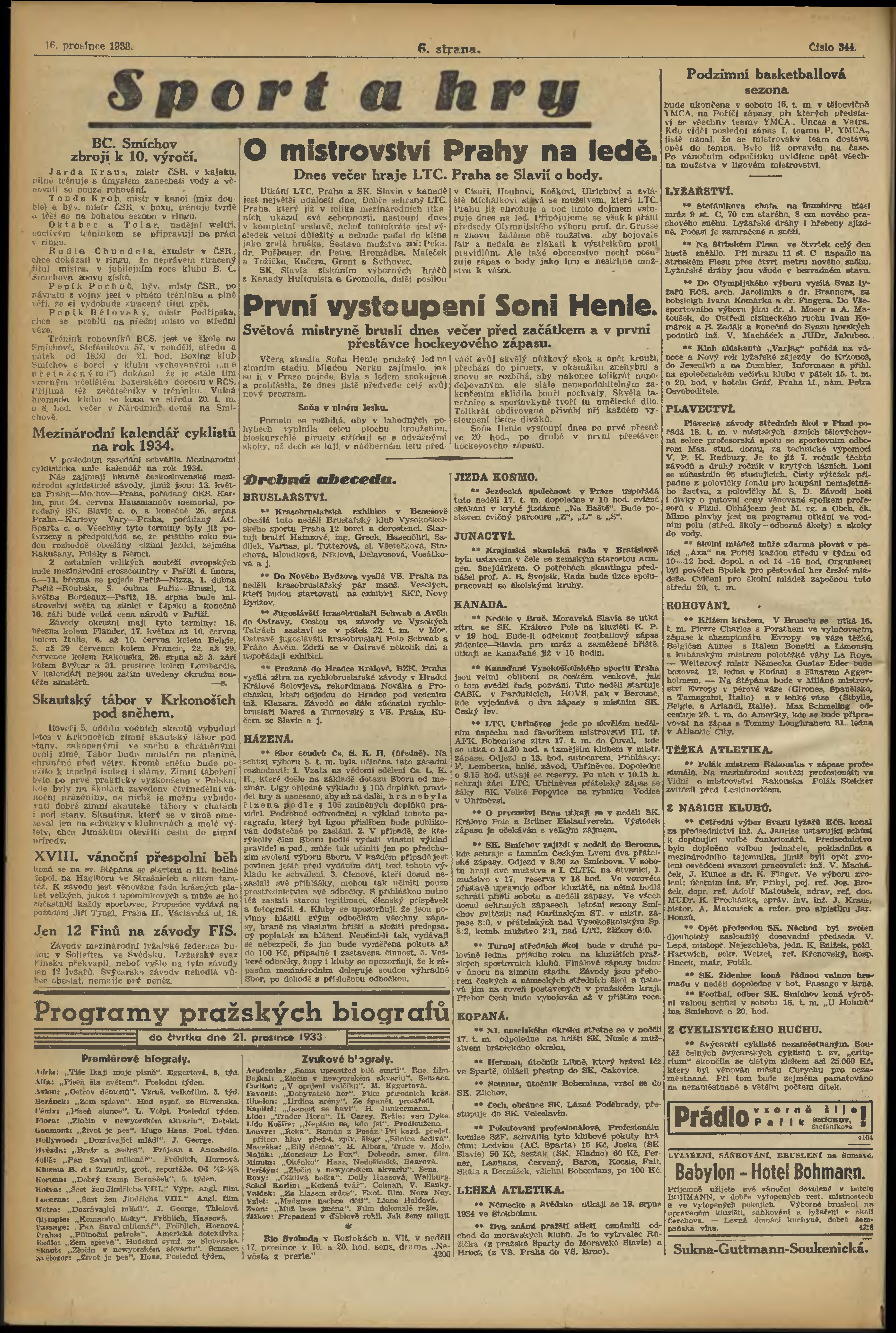 * Datum vydání výtisku: 16.12.1933 Číslo výtisku: 344 Poznámky k výtisku: večerní vydání;