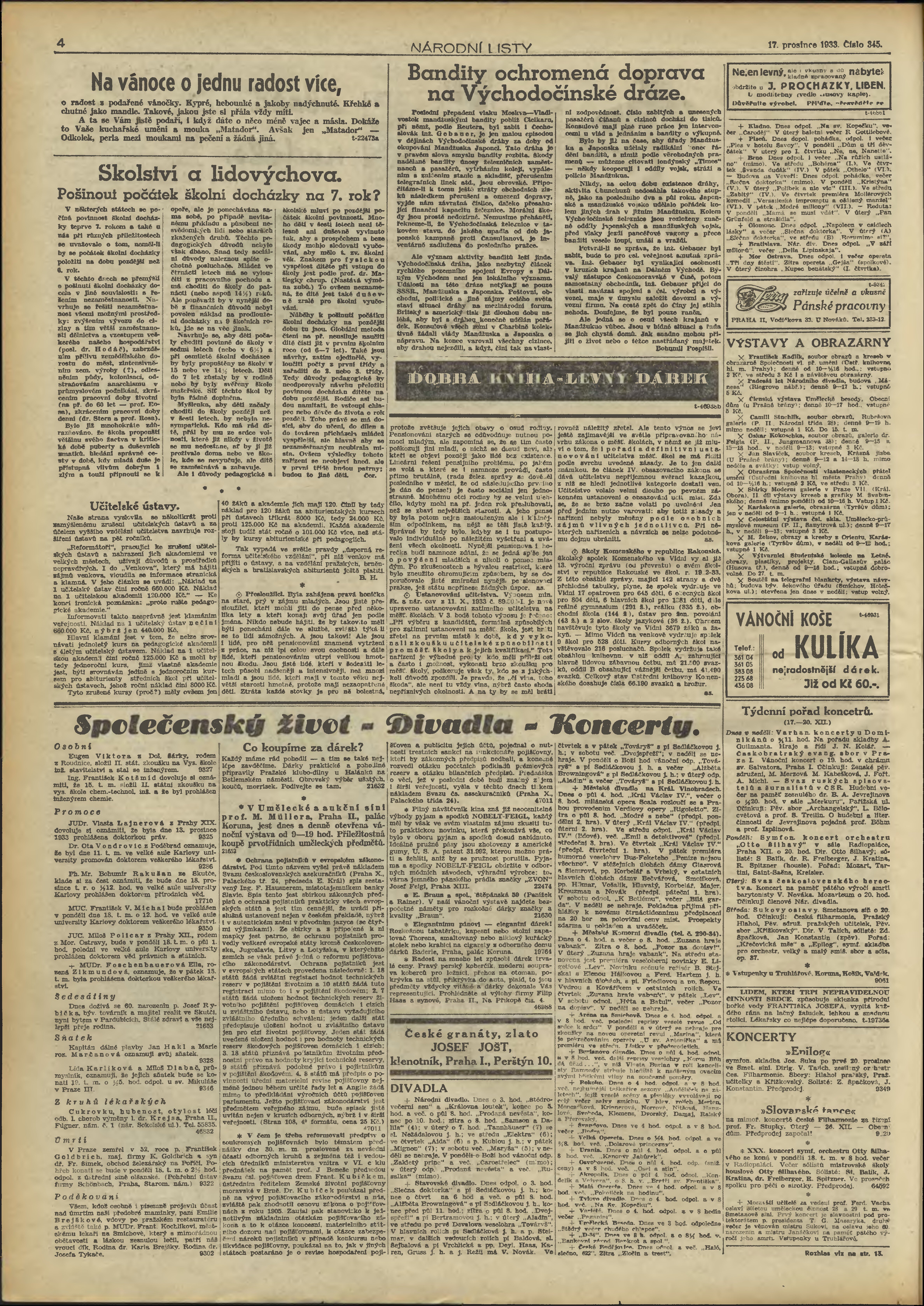 * Datum vydání výtisku: 17.12.1933 Číslo výtisku: 345