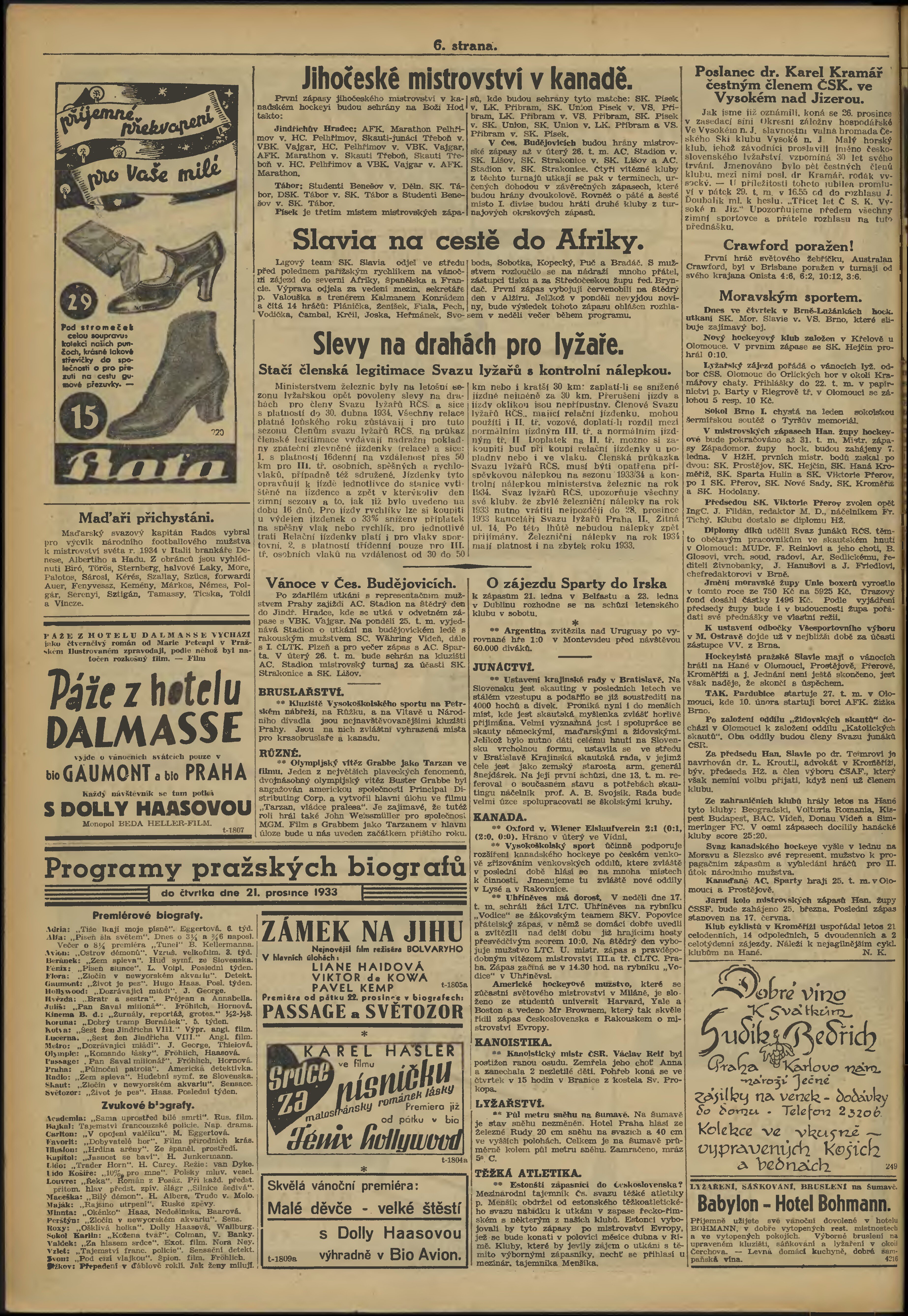 * Datum vydání výtisku: 21.12.1933 Číslo výtisku: 249