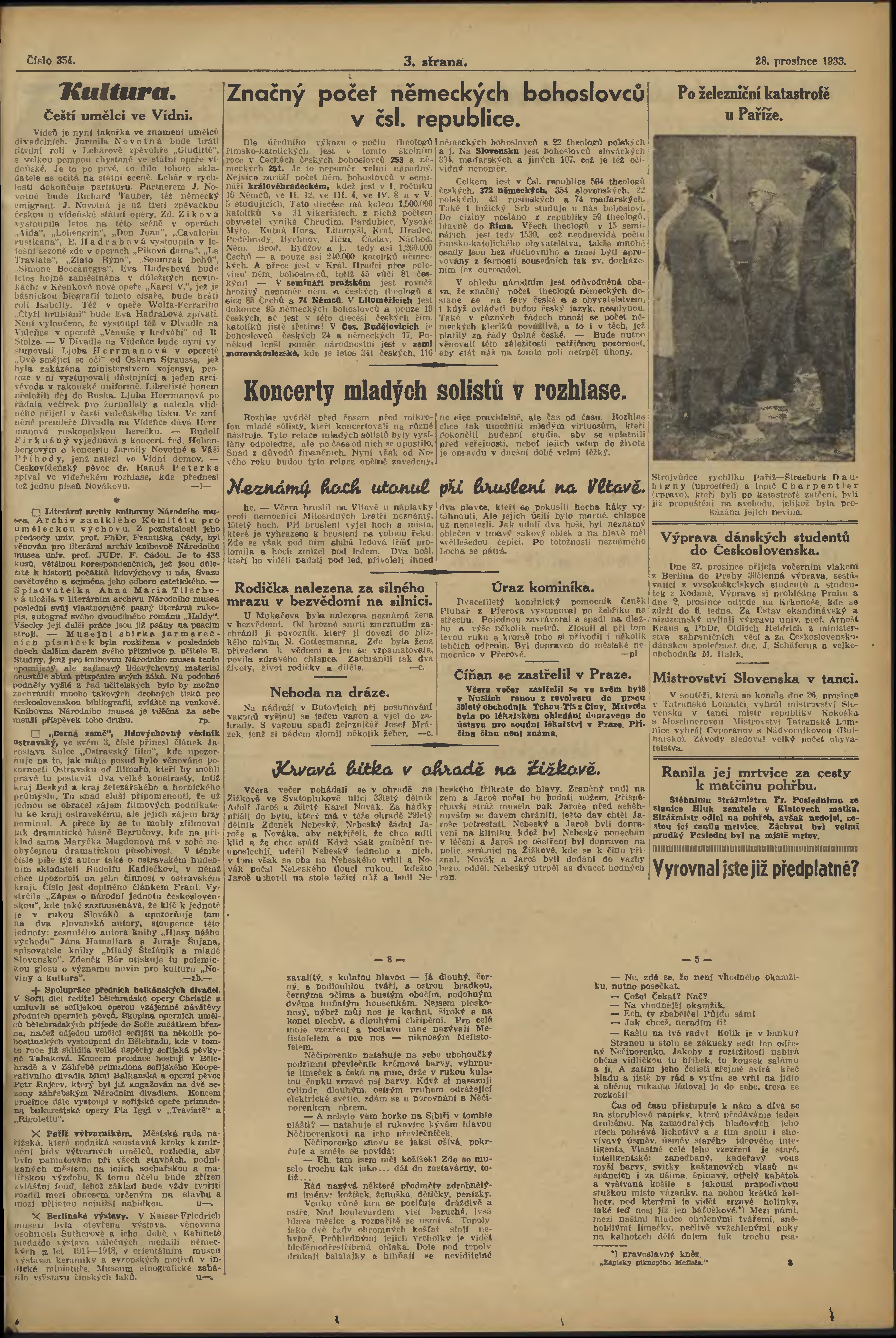 * Datum vydání výtisku: 28.12.1933 Číslo výtisku: 354 Poznámky k výtisku: večerní vydání;