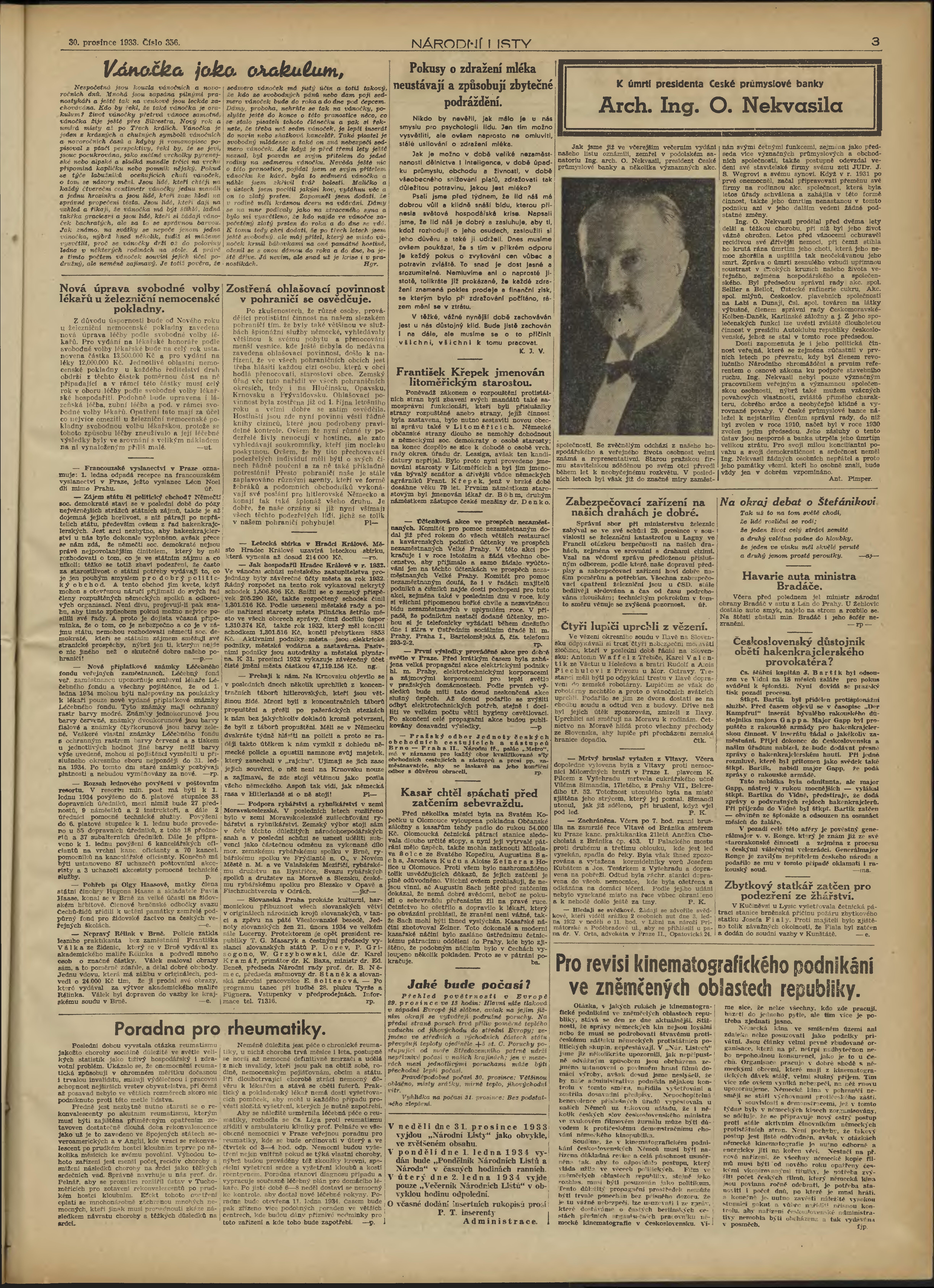 * Datum vydání výtisku: 30.12.1933 Číslo výtisku: 356