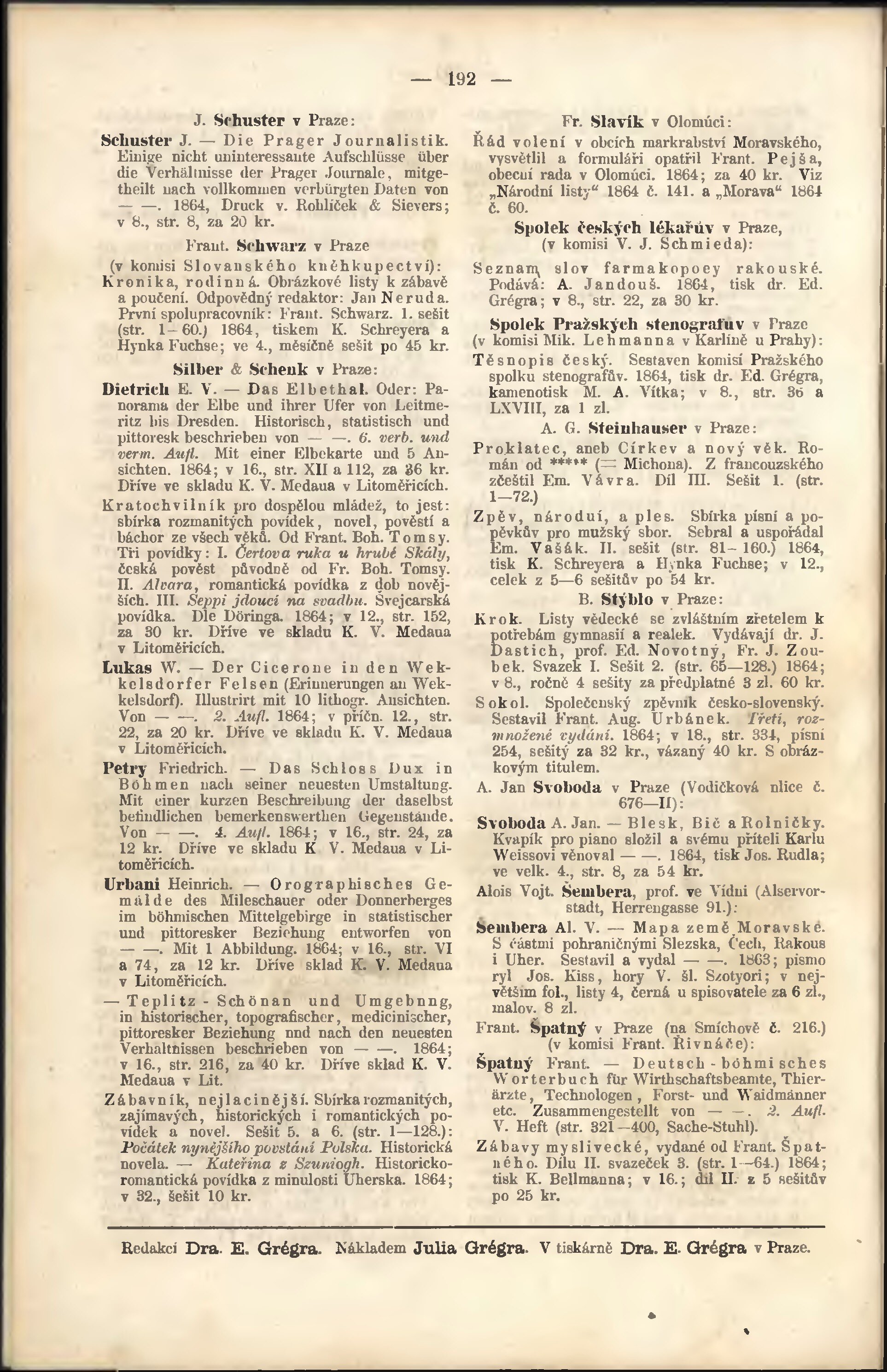 * Datum vydání ročníku: 1863 - 1864 Číslo ročníku: příloha