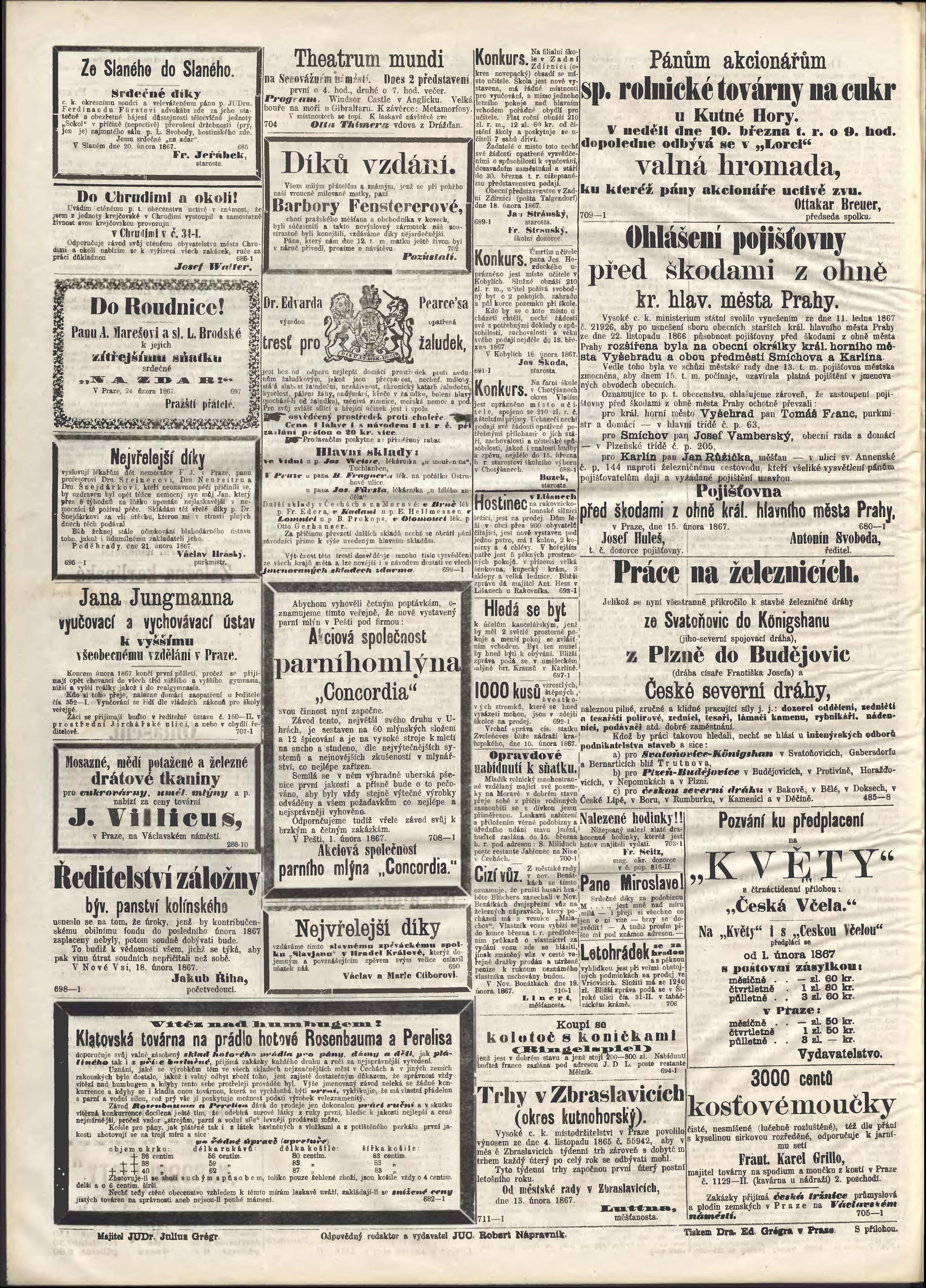 * Datum vydání výtisku: 24.2.1867 Číslo výtisku: 55