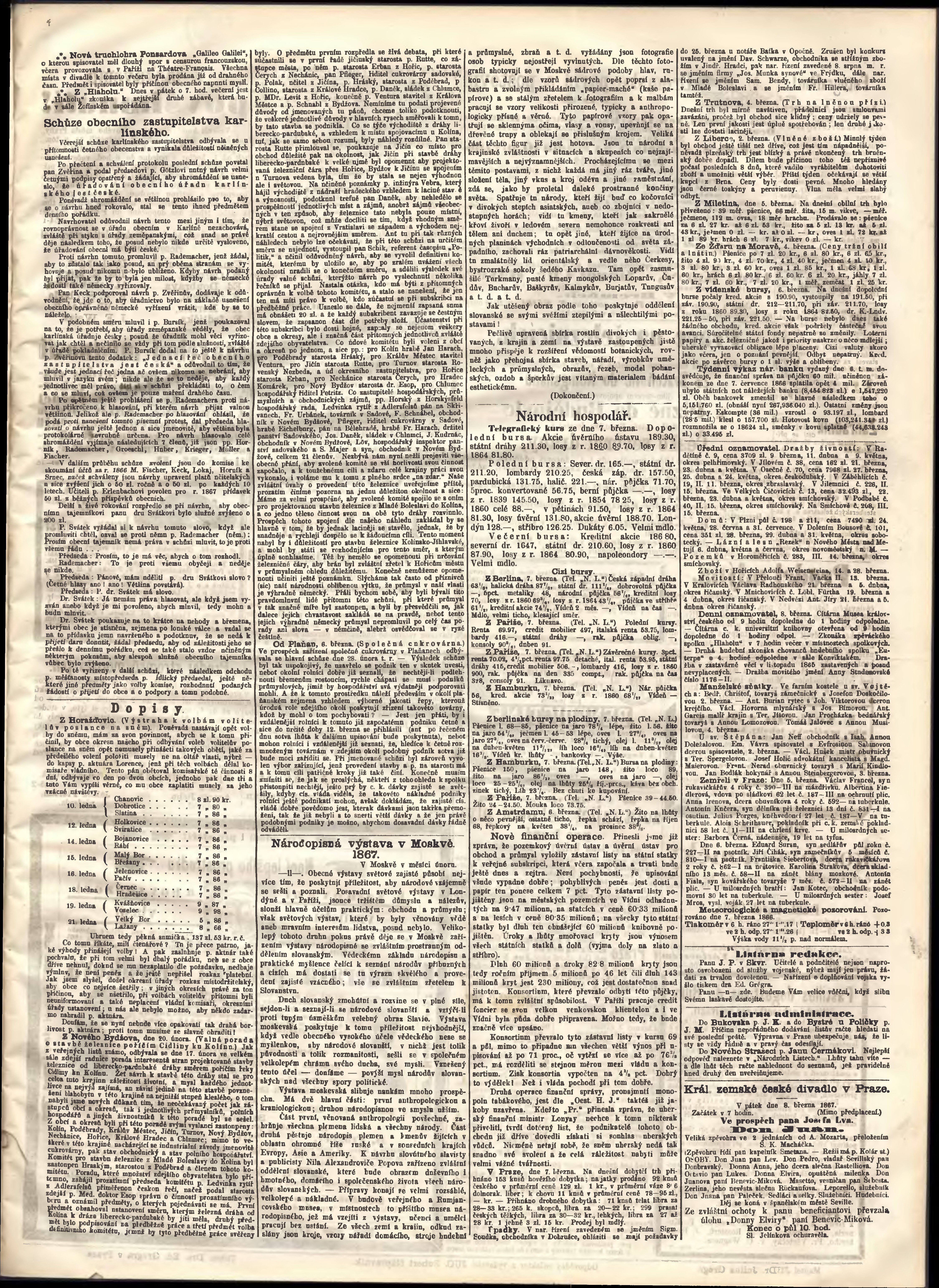 * Datum vydání výtisku: 8.3.1867 Číslo výtisku: 67