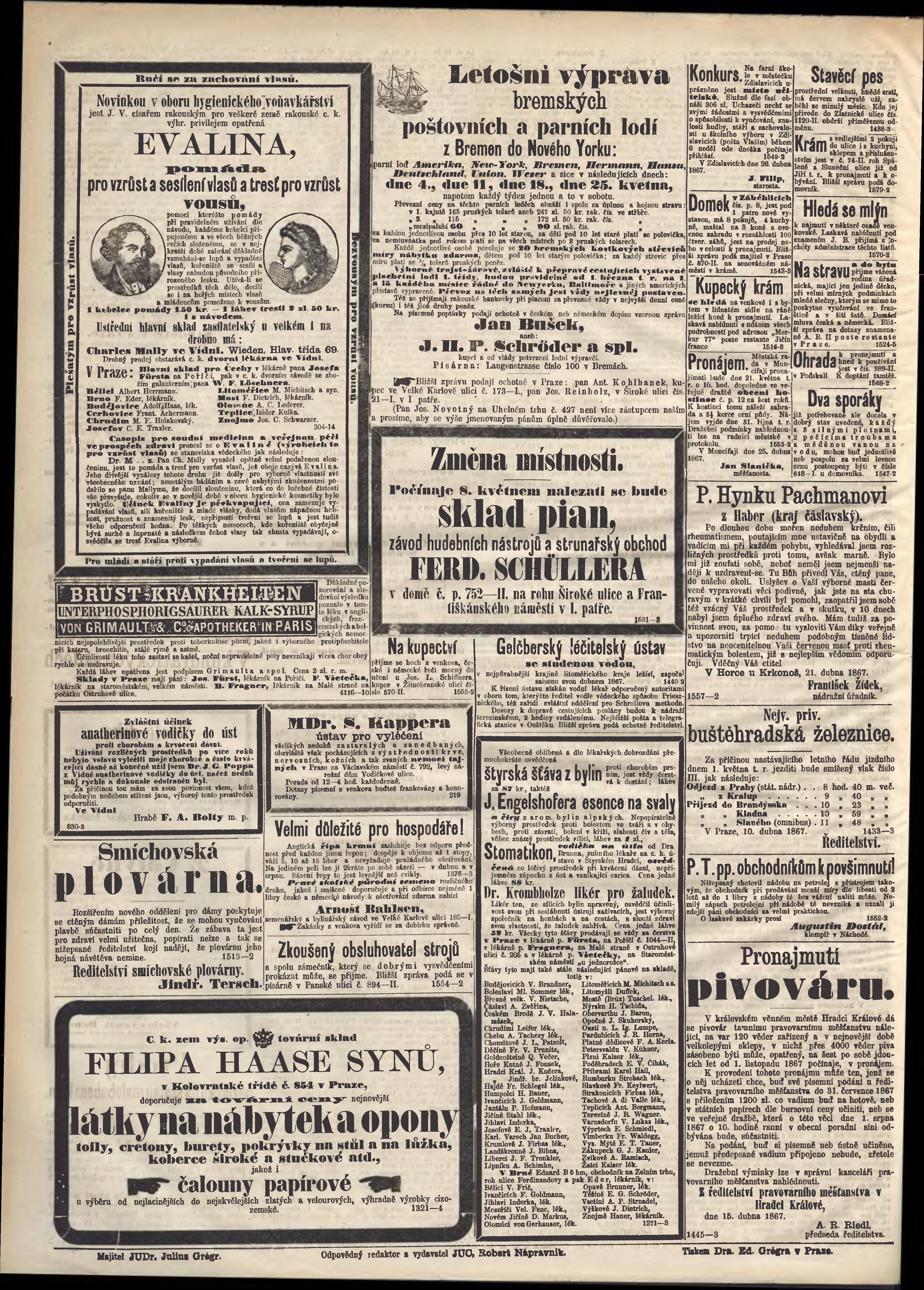 * Datum vydání výtisku: 30.4.1867 Číslo výtisku: 119