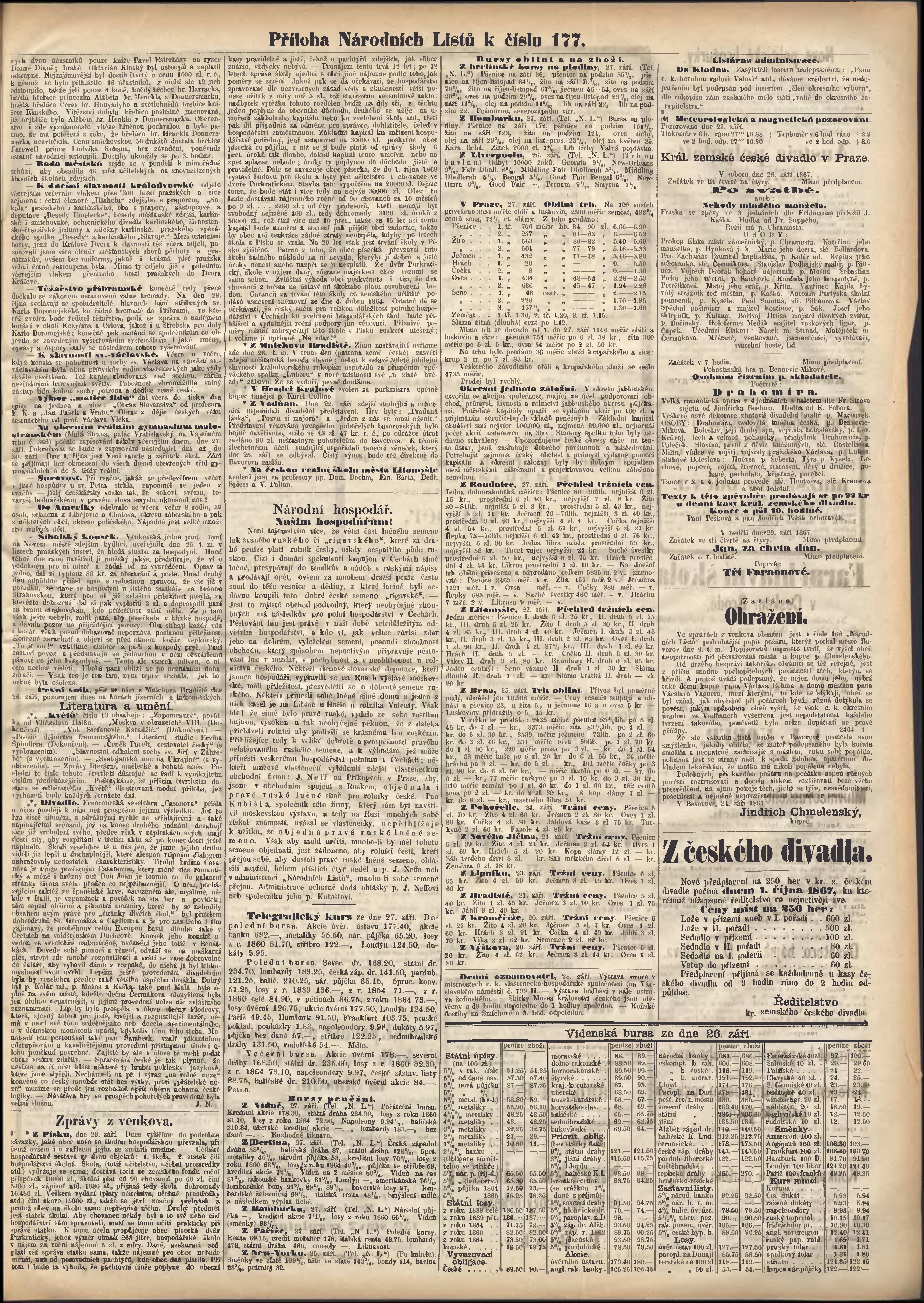 * Datum vydání výtisku: 28.9.1867 Číslo výtisku: 177 Typ výtisku: příloha