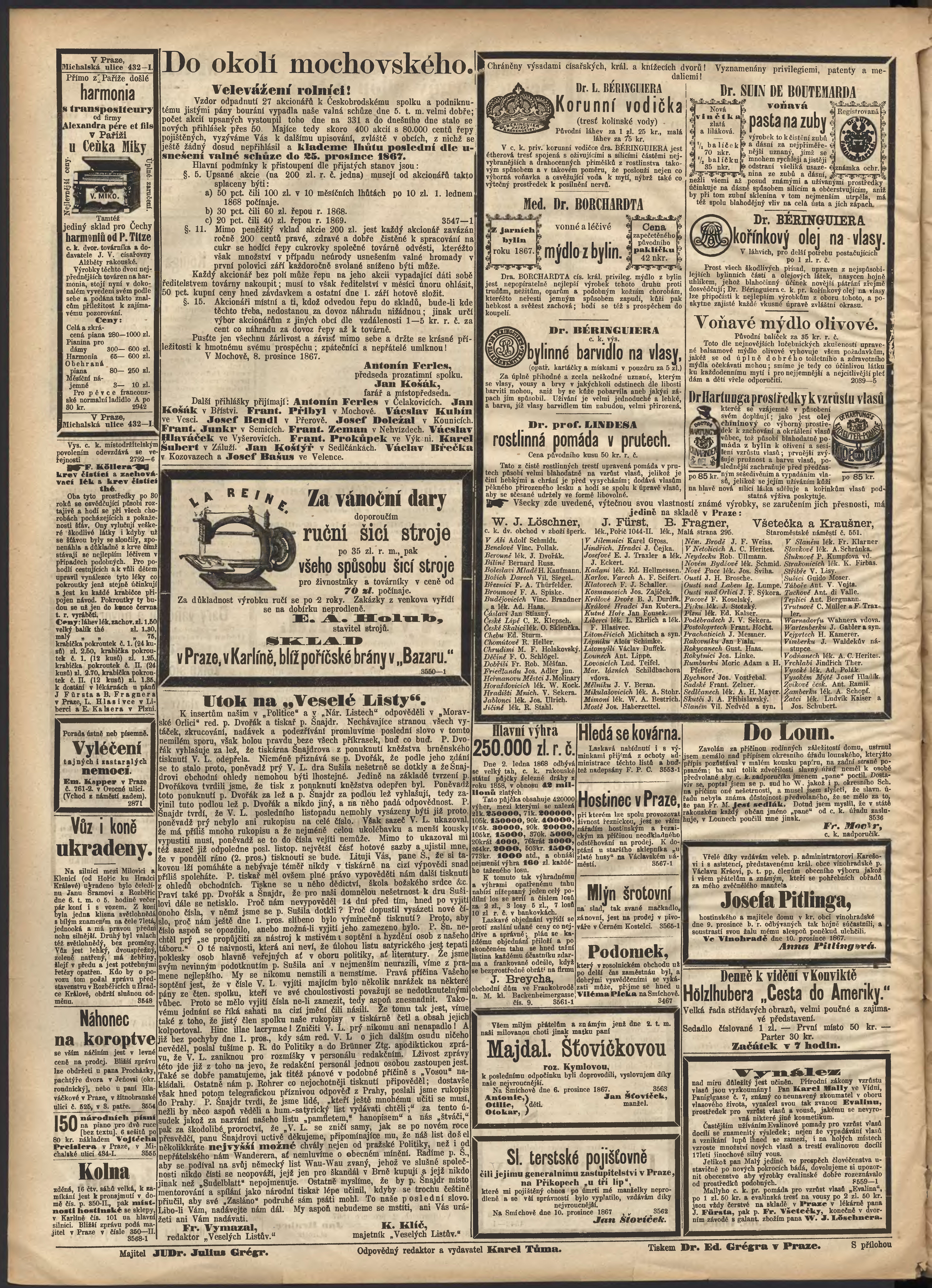 * Datum vydání výtisku: 11.12.1867 Číslo výtisku: 251