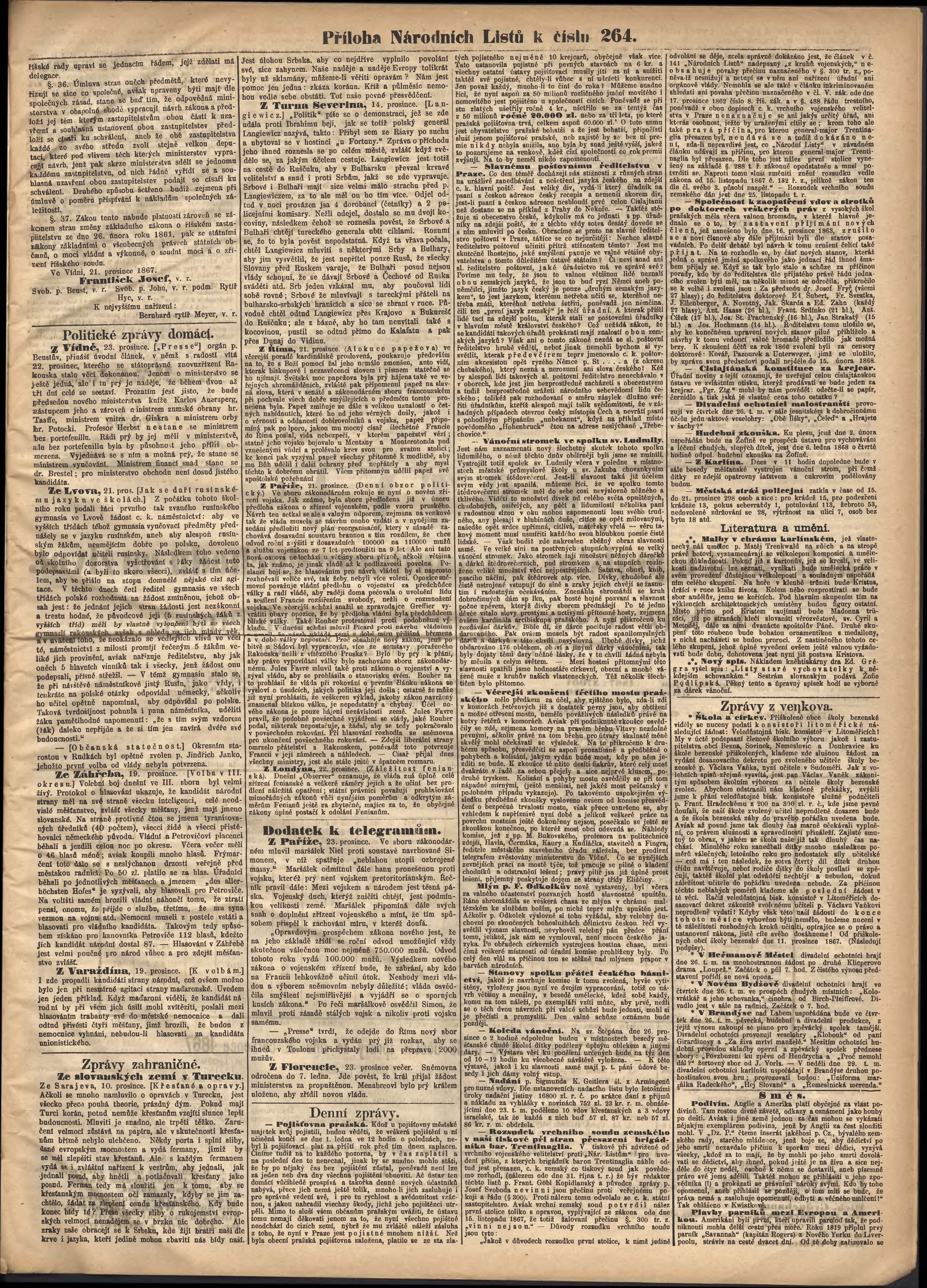 * Datum vydání výtisku: 24.12.1867 Číslo výtisku: 264 Typ výtisku: příloha