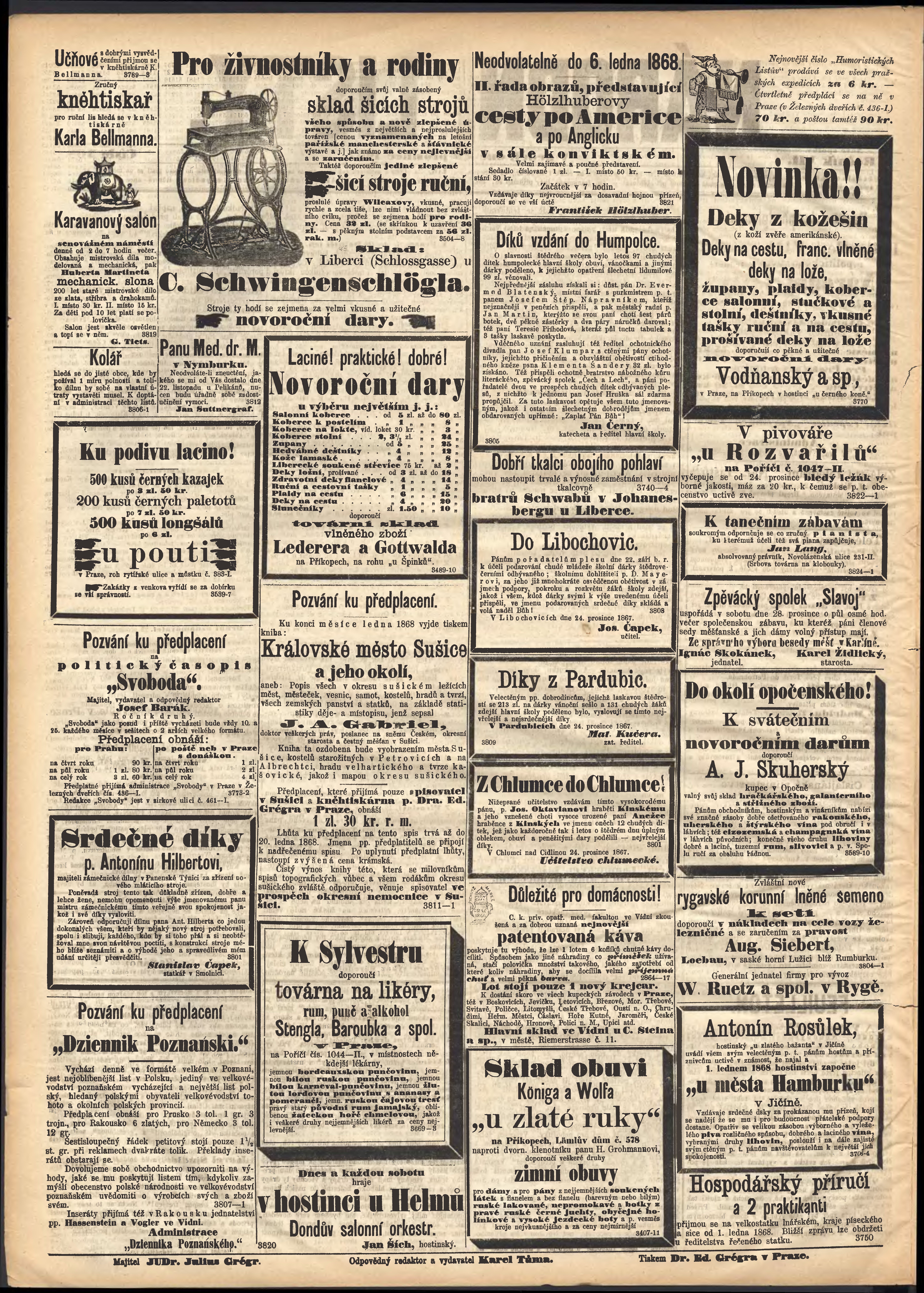 * Datum vydání výtisku: 28.12.1867 Číslo výtisku: 267