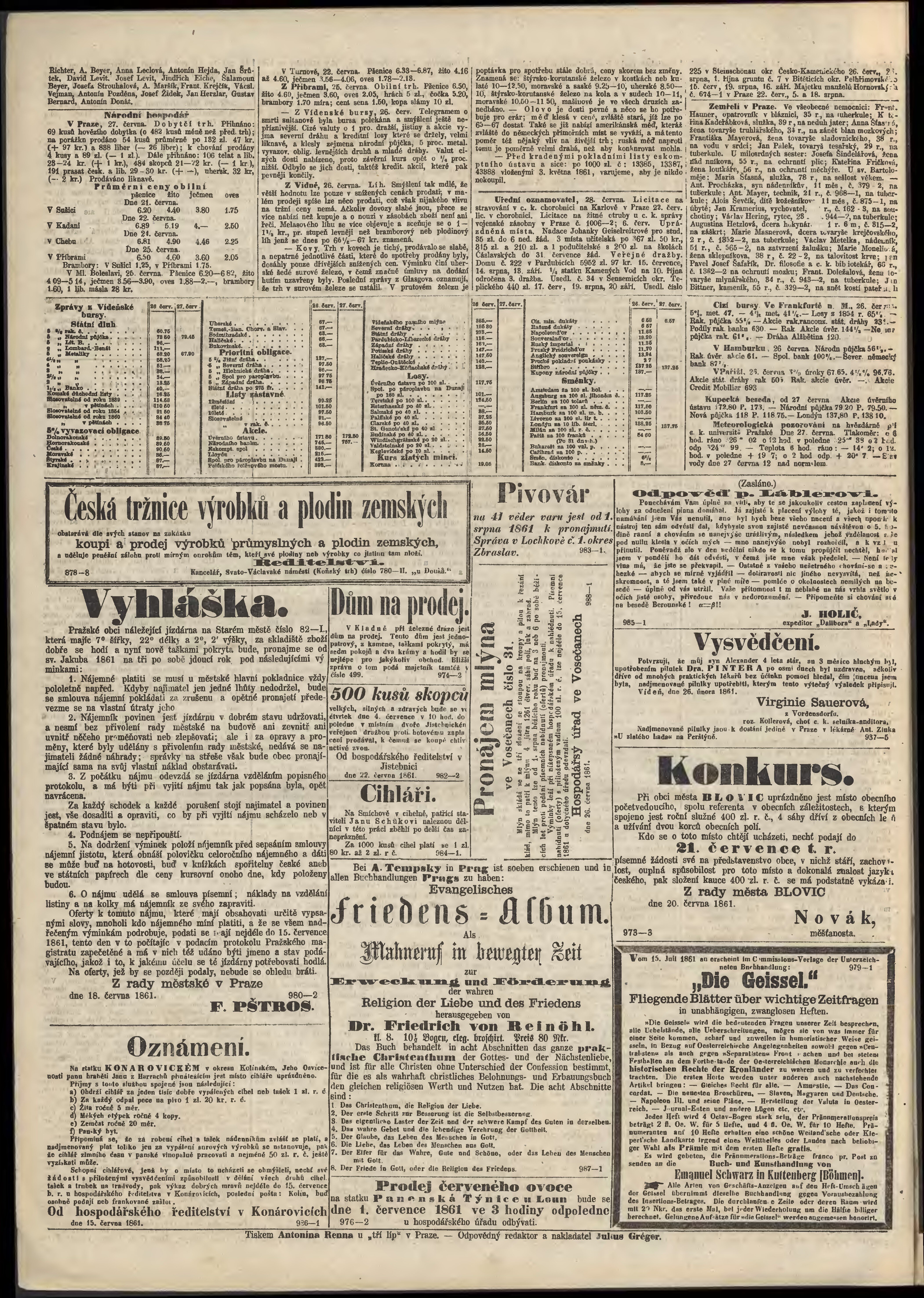 * Datum vydání výtisku: 28.6.1861 Číslo výtisku: 175