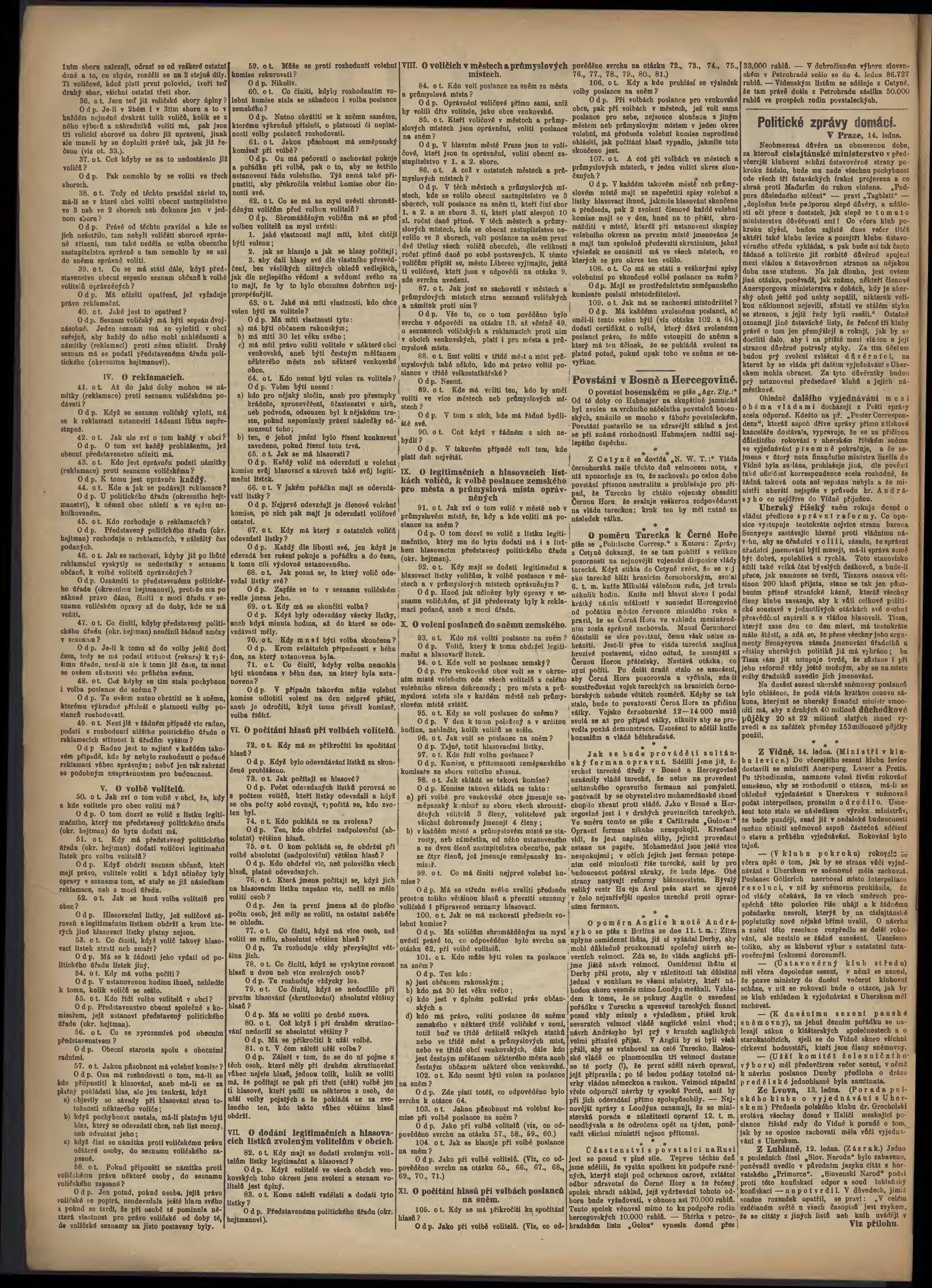 * Datum vydání výtisku: 15.1.1876 Číslo výtisku: 14