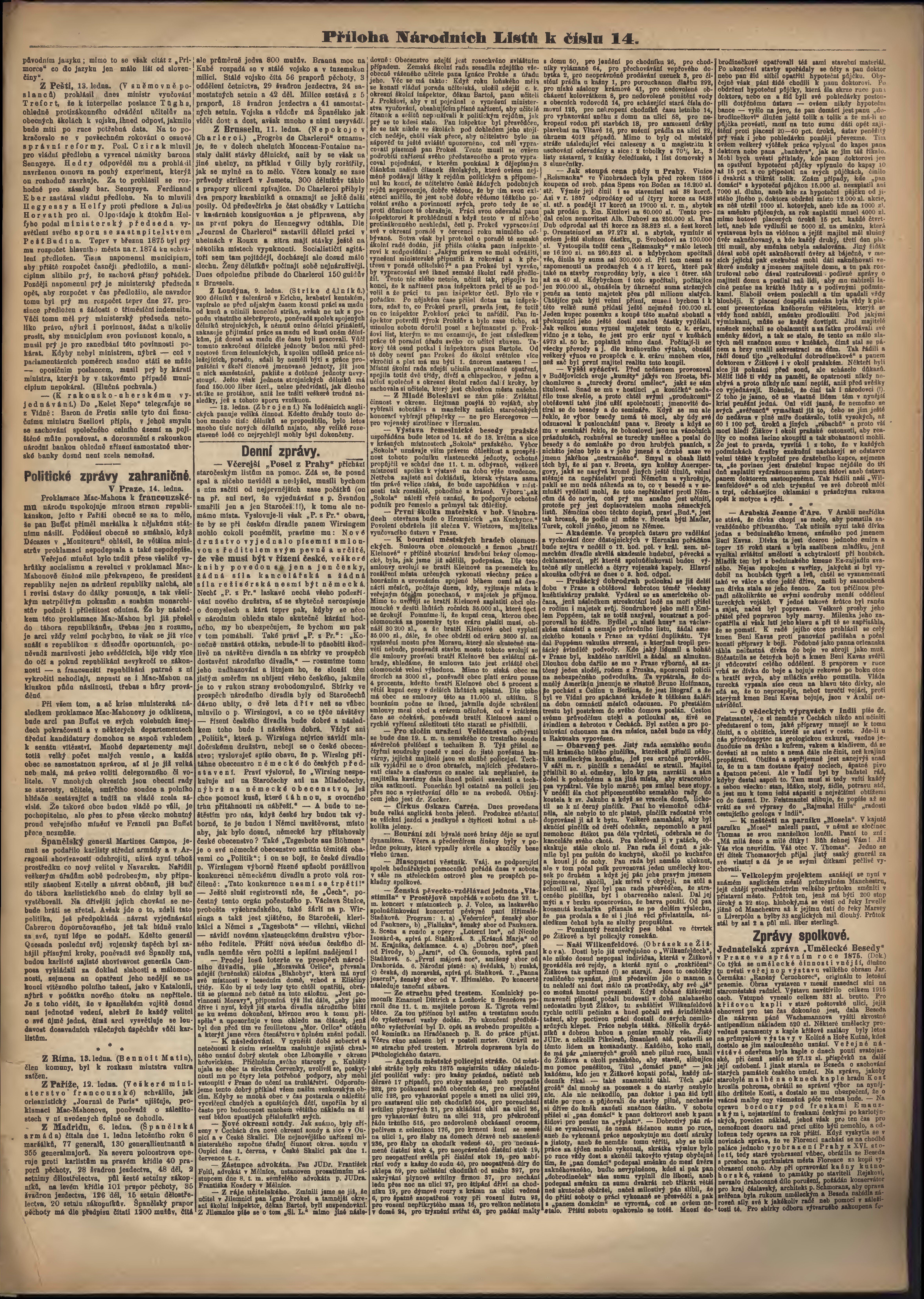 * Datum vydání výtisku: 15.1.1876 Číslo výtisku: 14