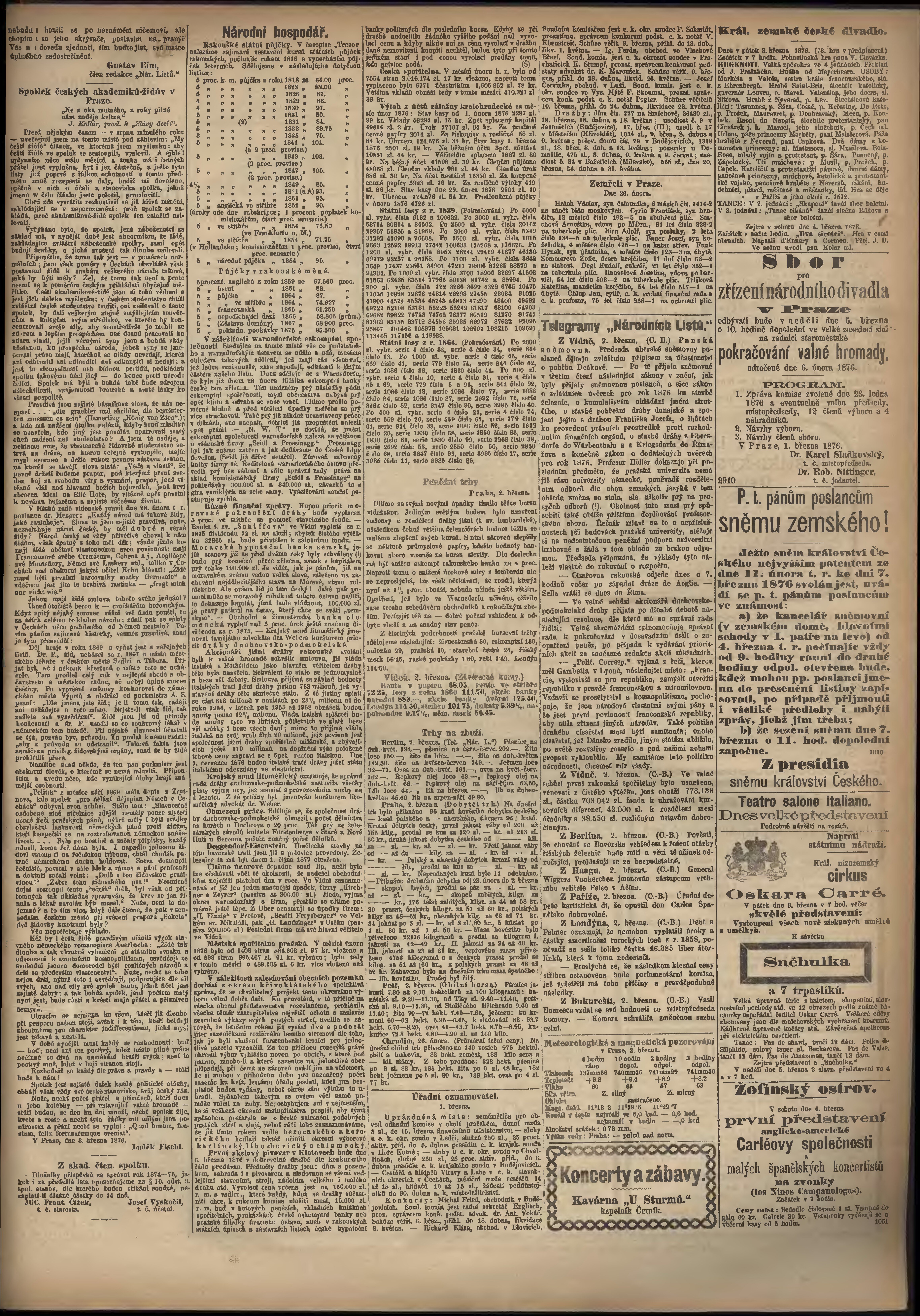 * Datum vydání výtisku: 3.3.1876 Číslo výtisku: 62