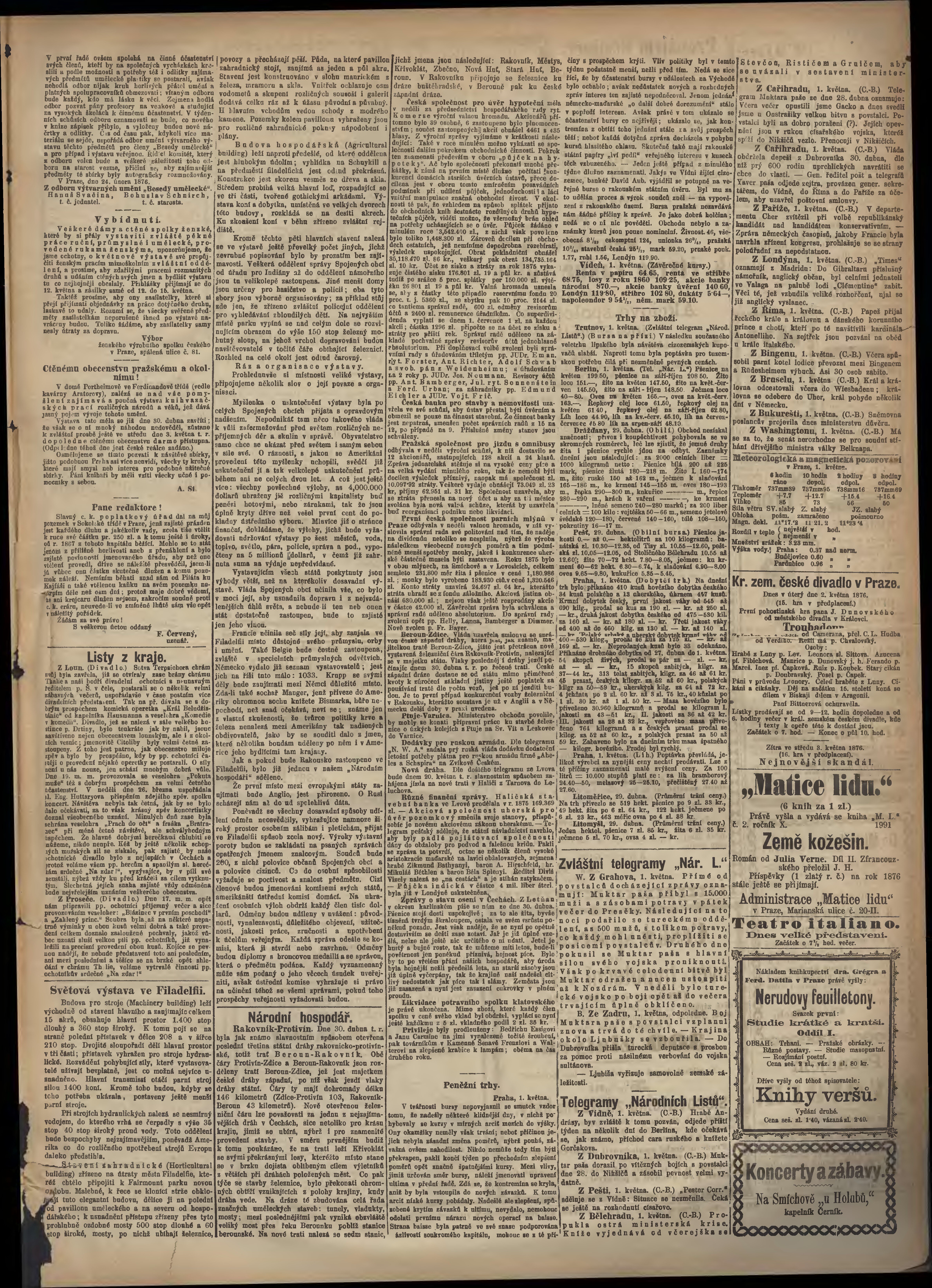 * Datum vydání výtisku: 2.5.1876 Číslo výtisku: 121