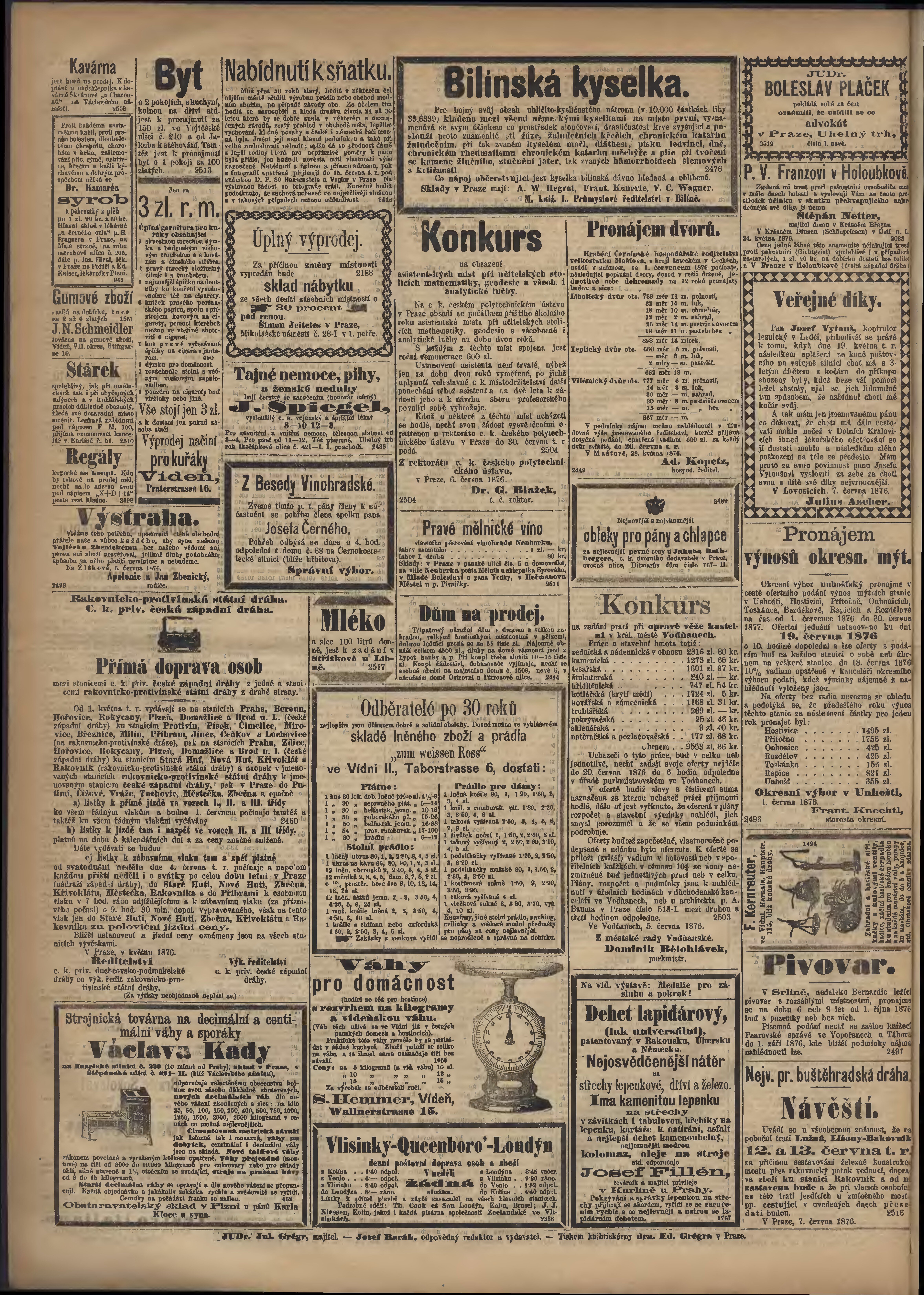 * Datum vydání výtisku: 8.6.1876 Číslo výtisku: 157