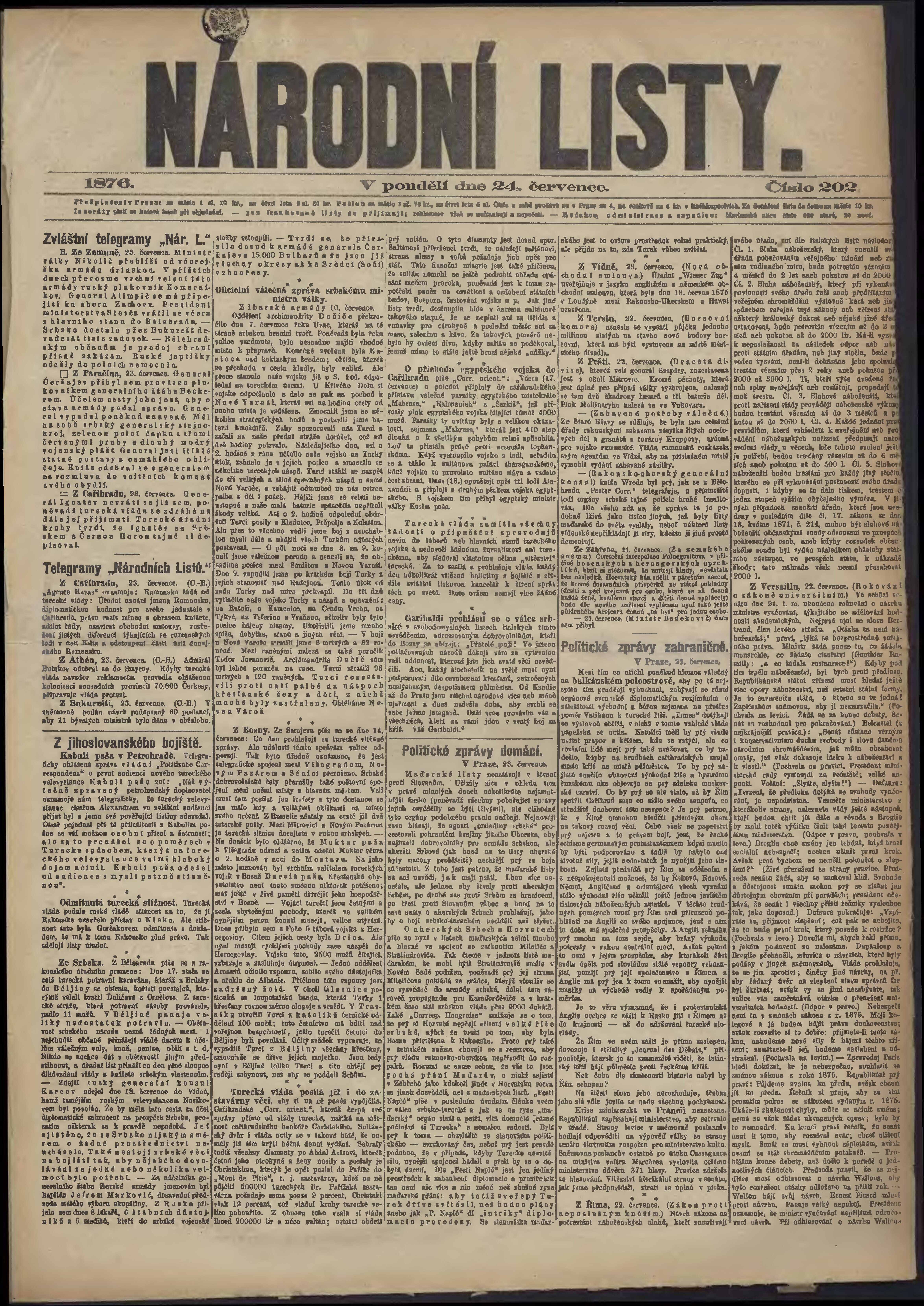 * Datum vydání výtisku: 24.7.1876 Číslo výtisku: 202