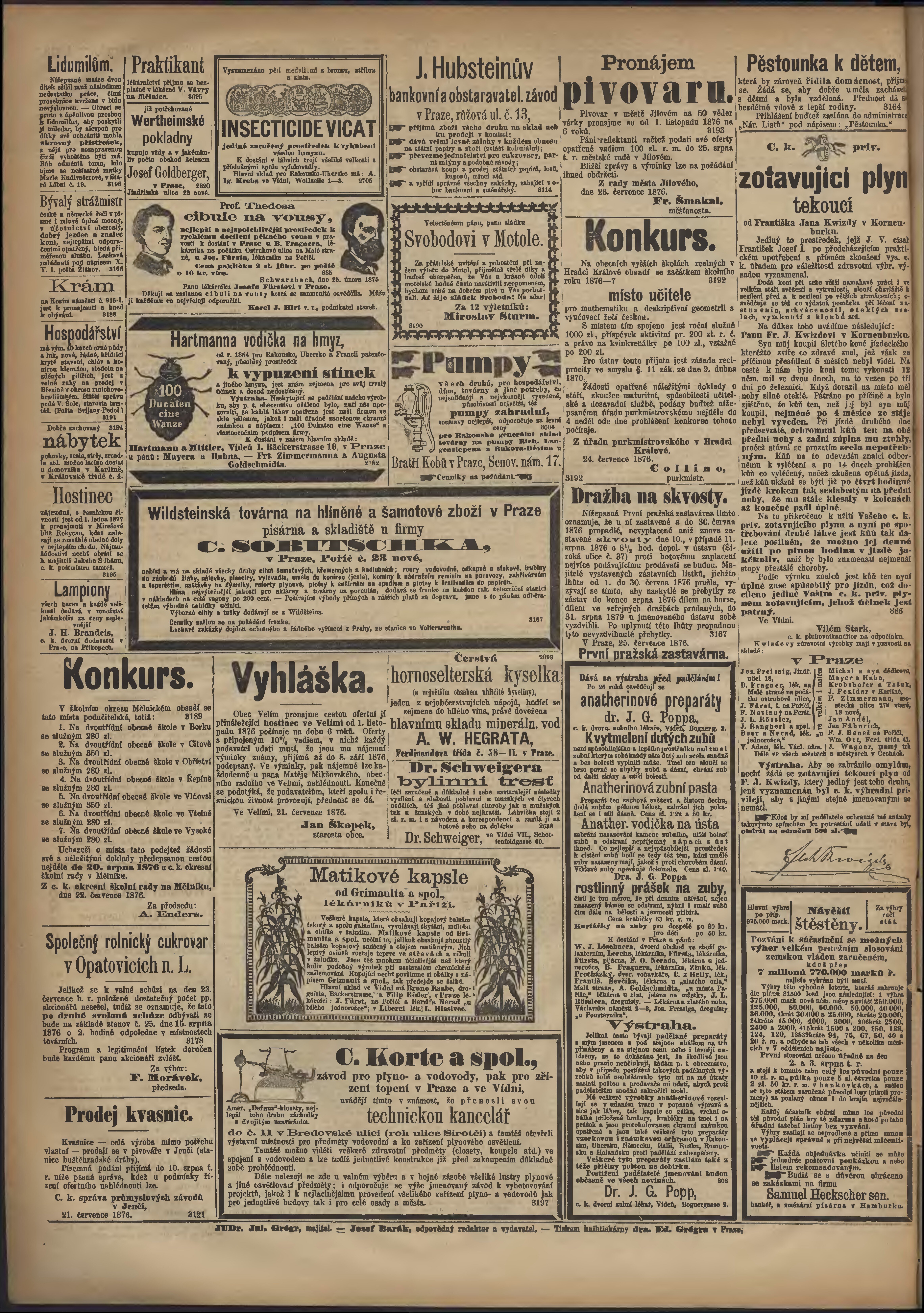 * Datum vydání výtisku: 28.7.1876 Číslo výtisku: 206