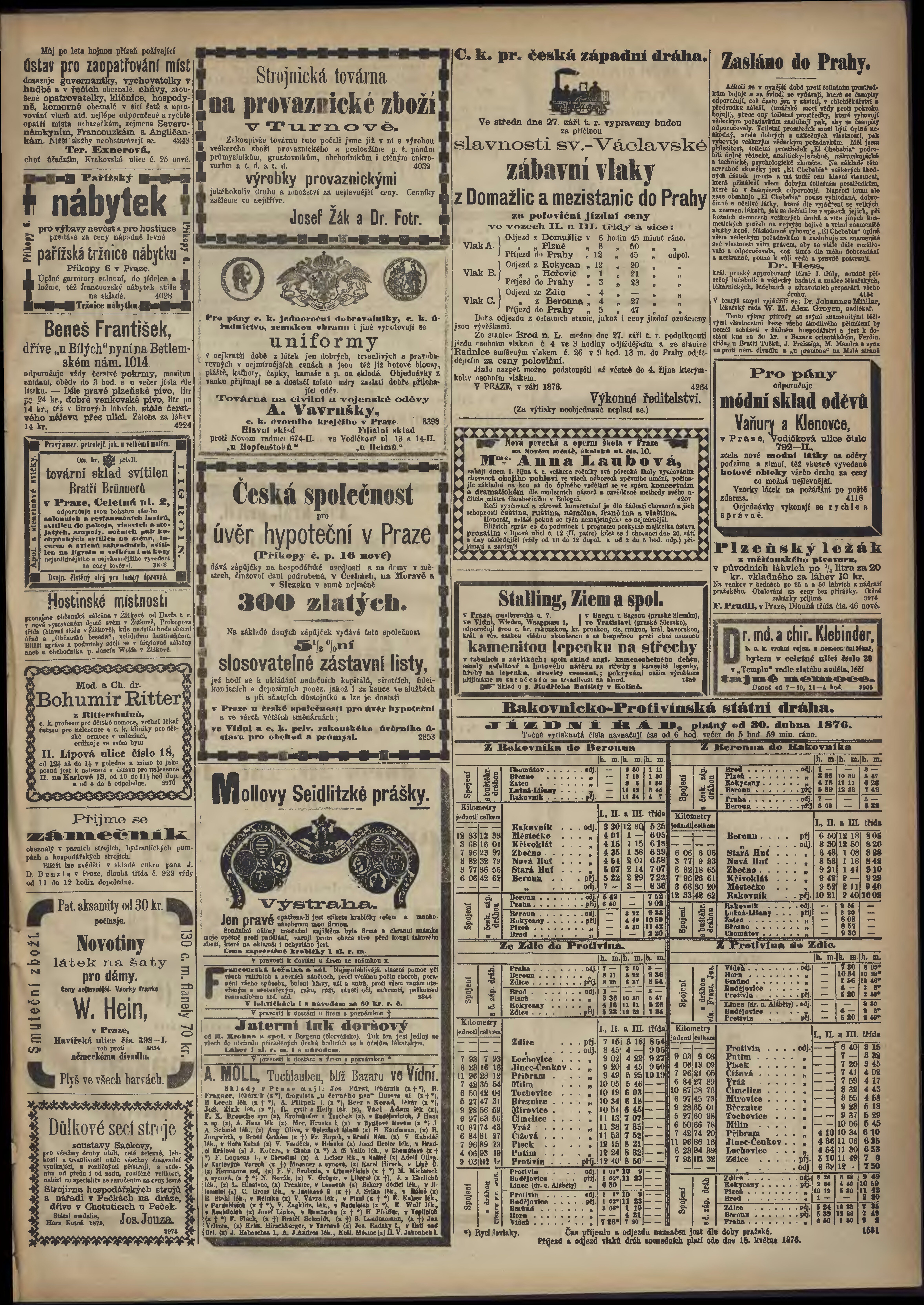 * Datum vydání výtisku: 19.9.1876 Číslo výtisku: 259