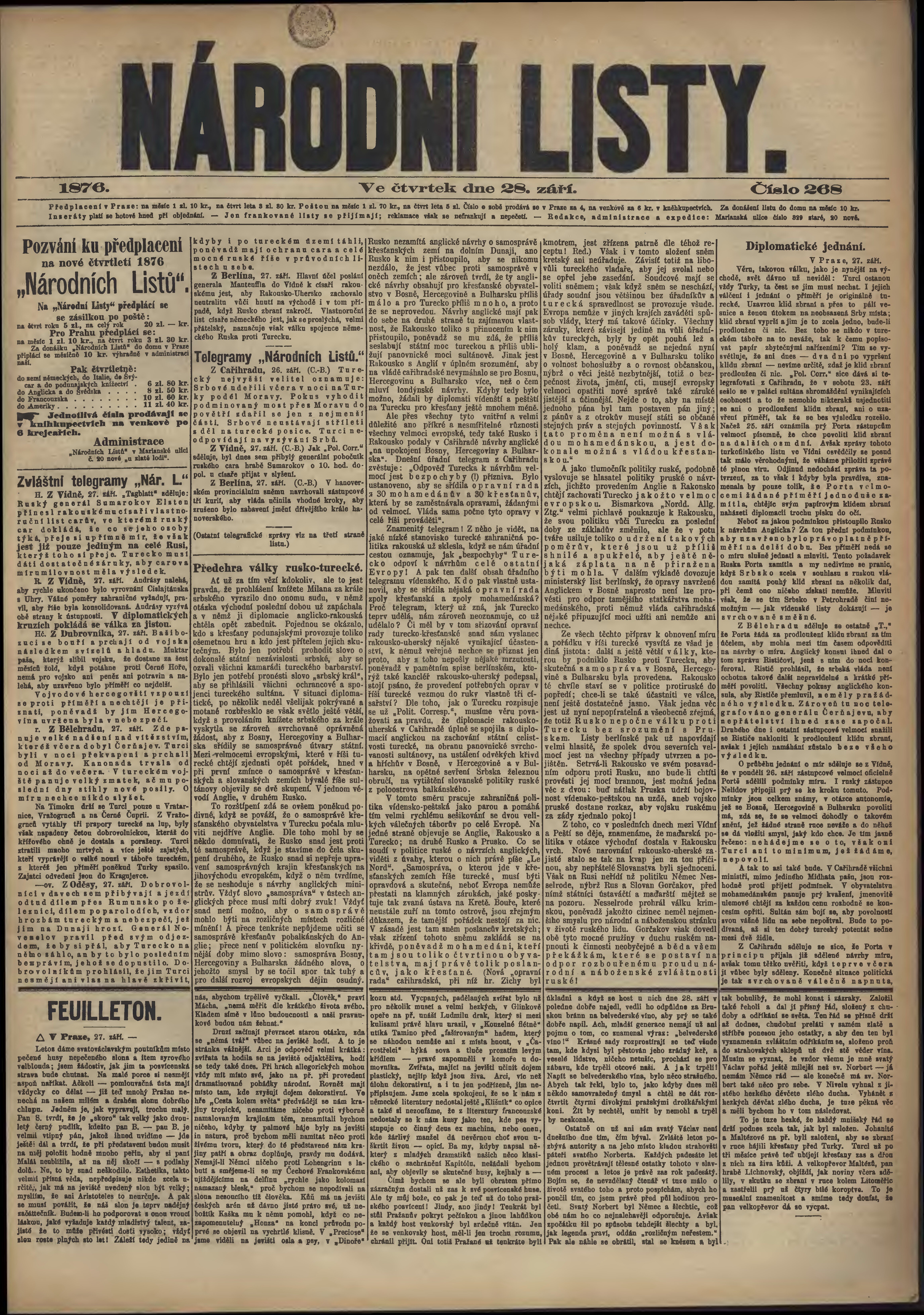 * Datum vydání výtisku: 28.9.1876 Číslo výtisku: 268