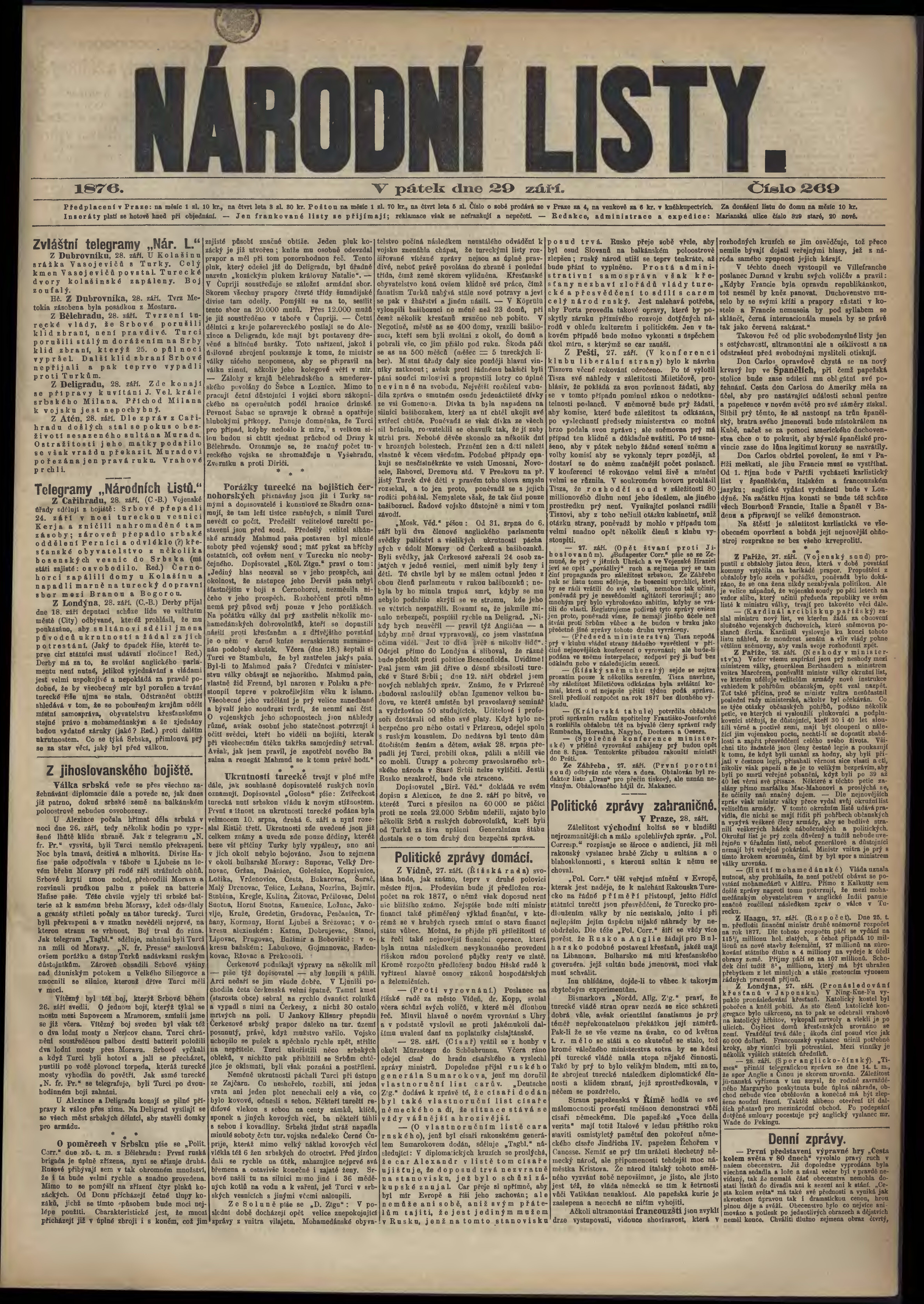 * Datum vydání výtisku: 29.9.1876 Číslo výtisku: 269