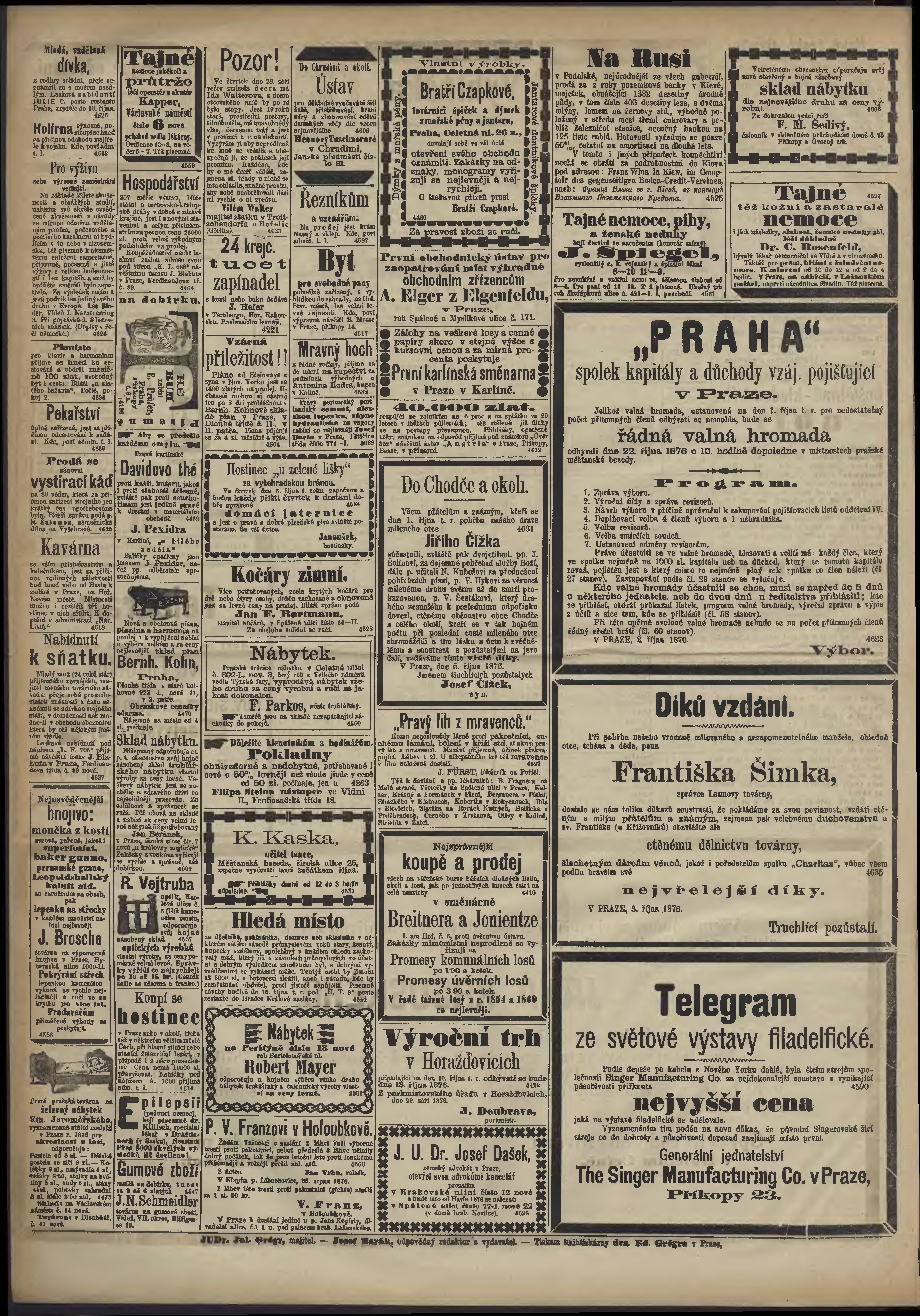 * Datum vydání výtisku: 5.10.1876 Číslo výtisku: 275