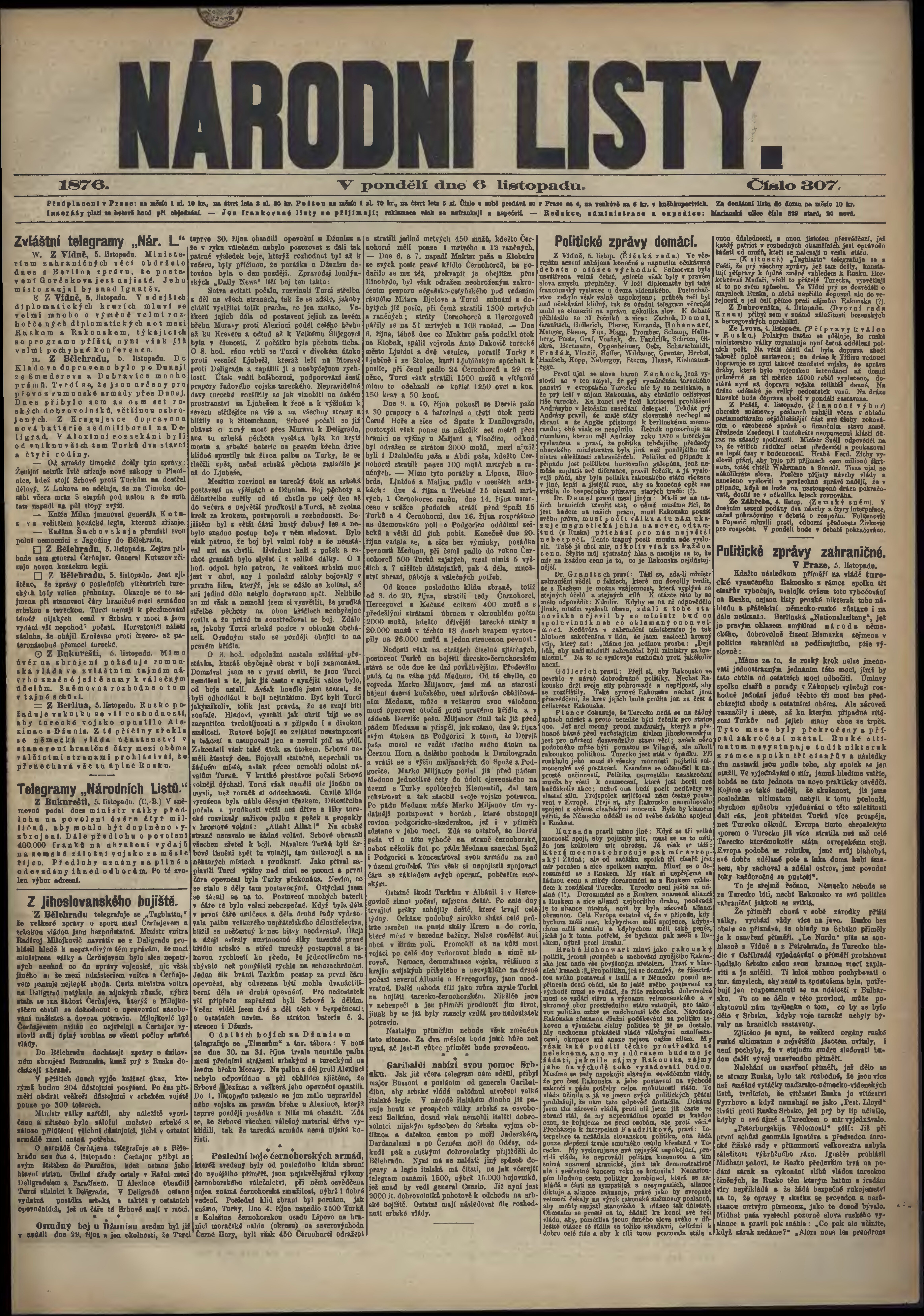* Datum vydání výtisku: 6.11.1876 Číslo výtisku: 307
