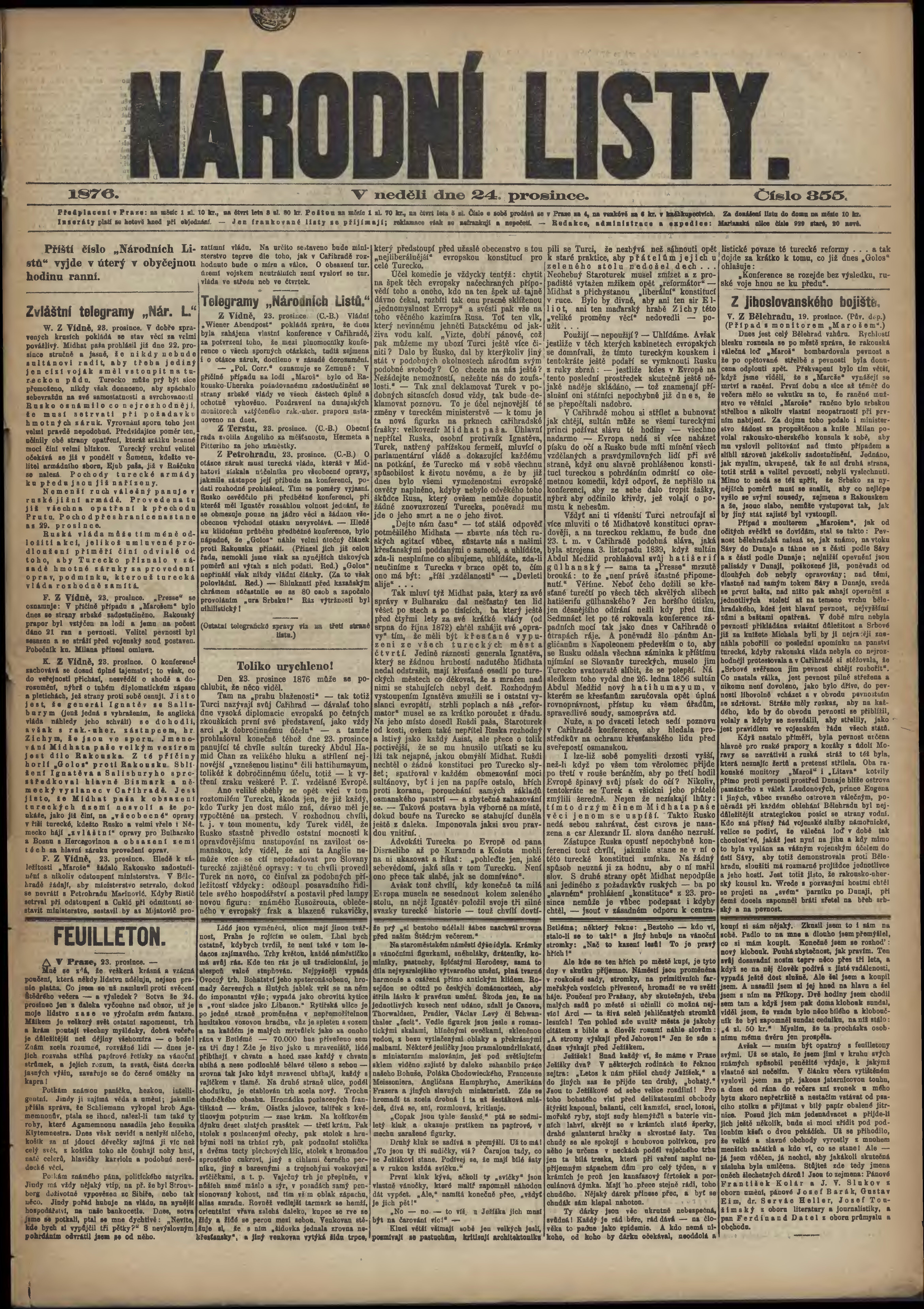 * Datum vydání výtisku: 24.12.1876 Číslo výtisku: 355