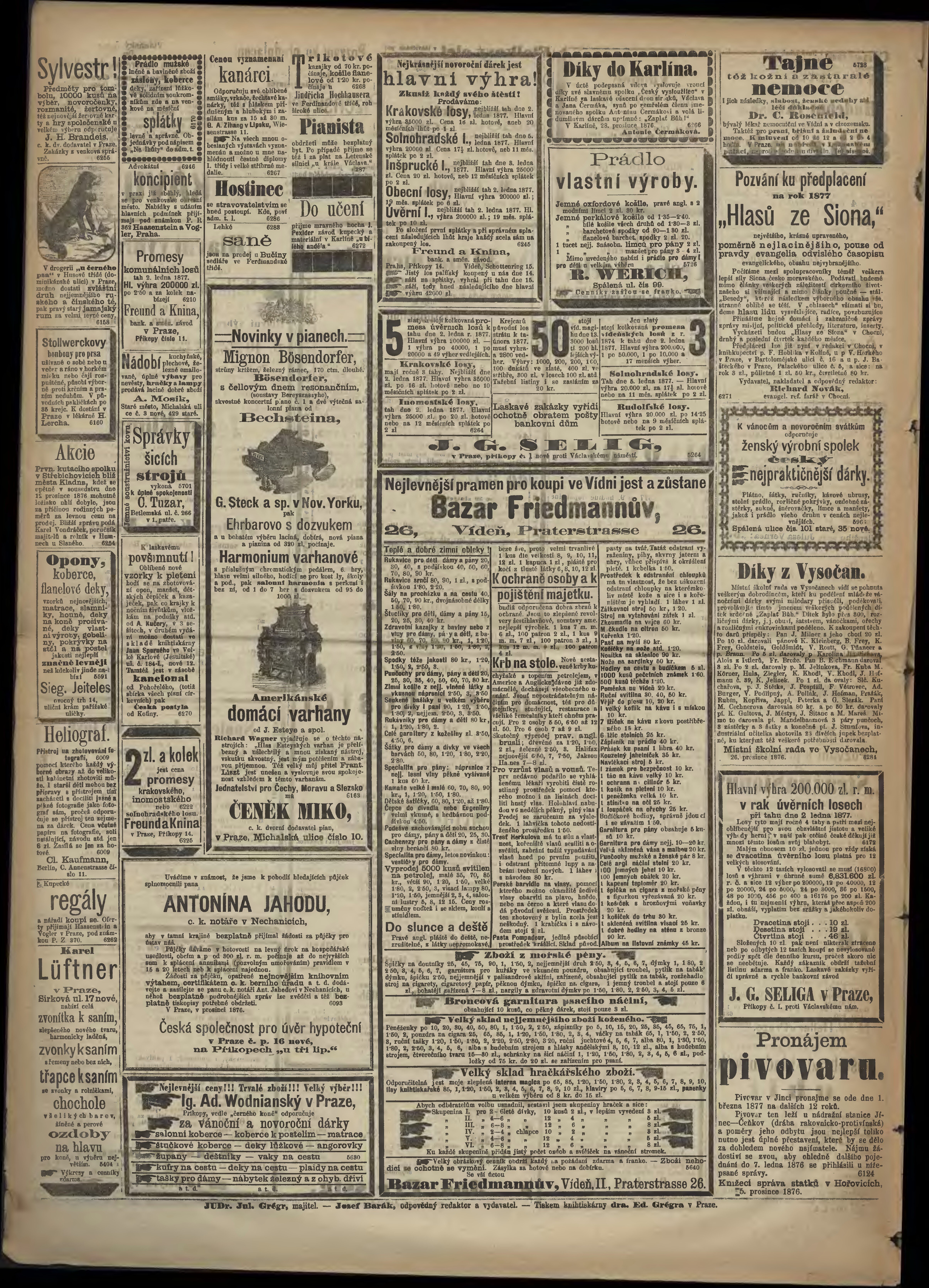 * Datum vydání výtisku: 30.12.1876 Číslo výtisku: 360