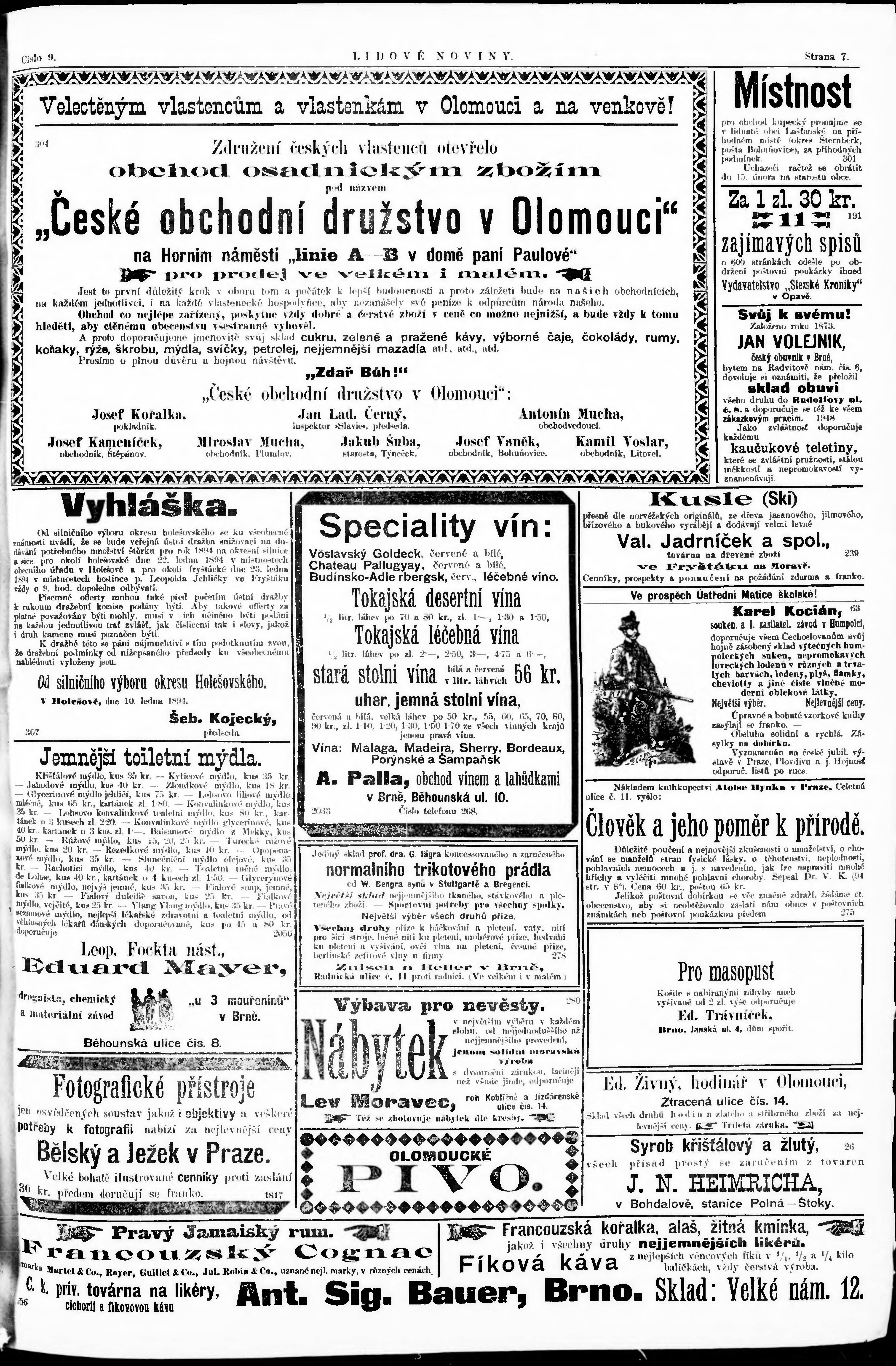 * Datum vydání výtisku: 13.1.1894 Číslo výtisku: 9 Poznámky k výtisku: nekvalitní a poškozená předloha;