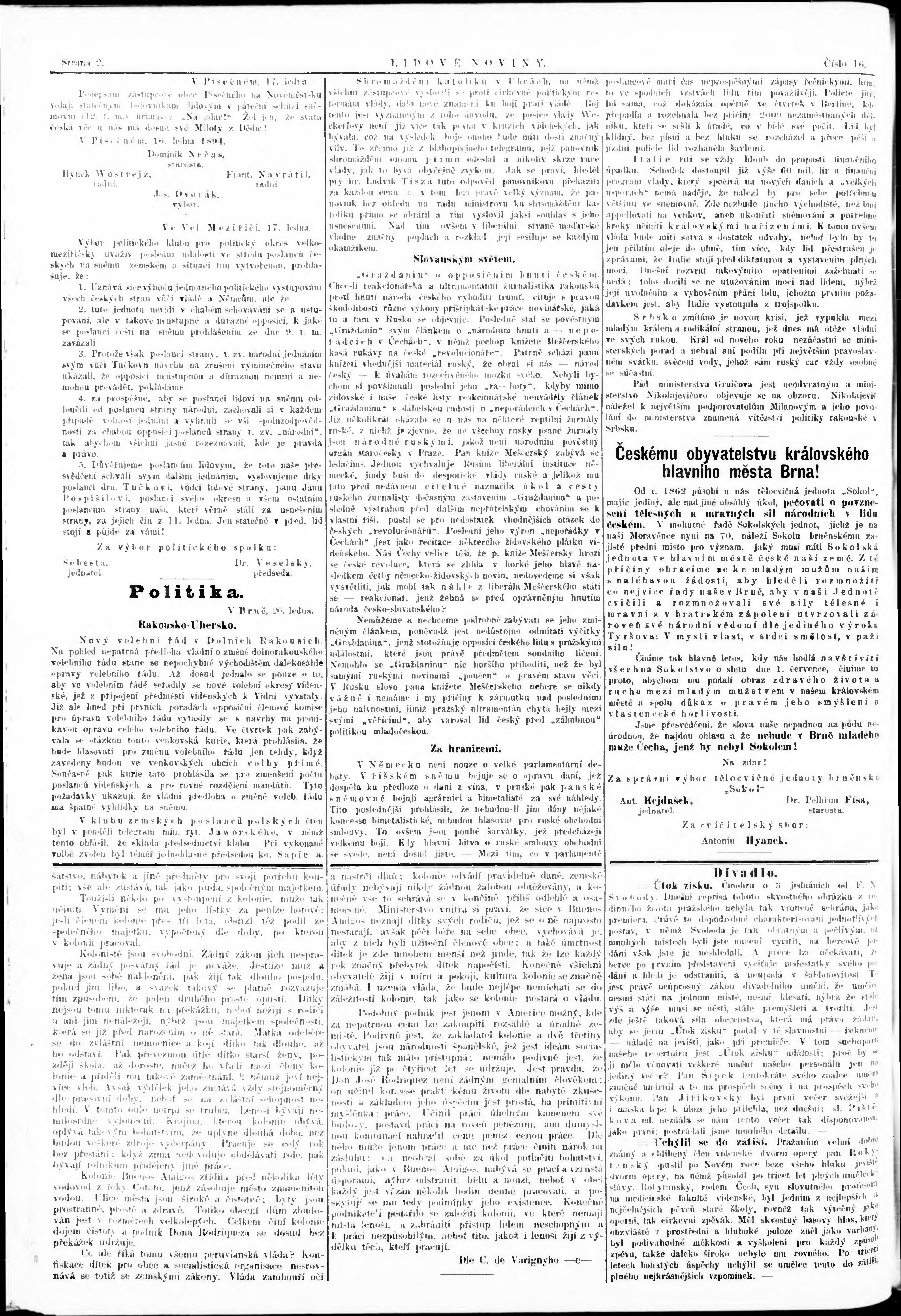 * Datum vydání výtisku: 21.1.1894 Číslo výtisku: 16 Poznámky k výtisku: nekvalitní předloha;