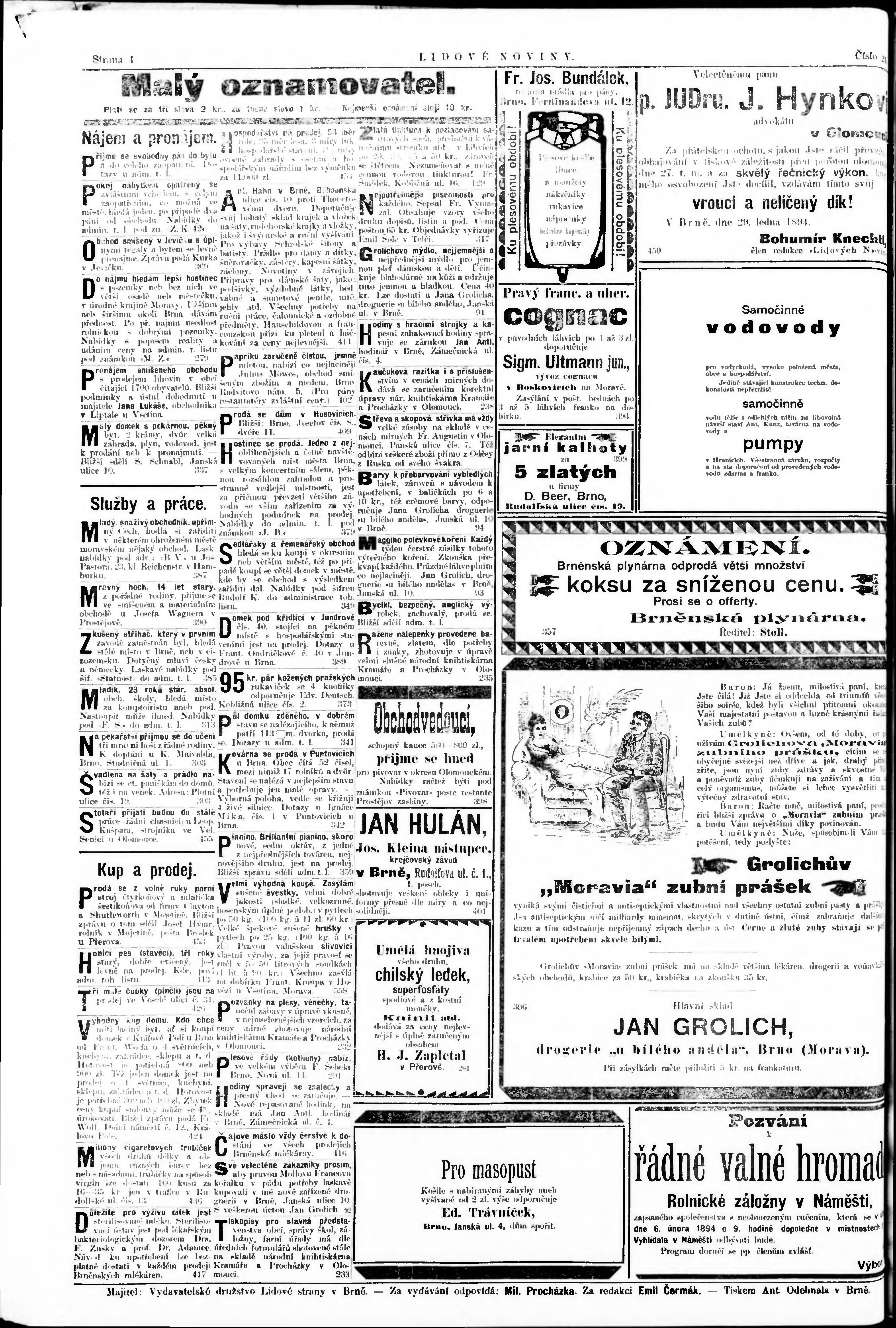 * Datum vydání výtisku: 31.1.1894 Číslo výtisku: 24 Poznámky k výtisku: poškozená předloha;