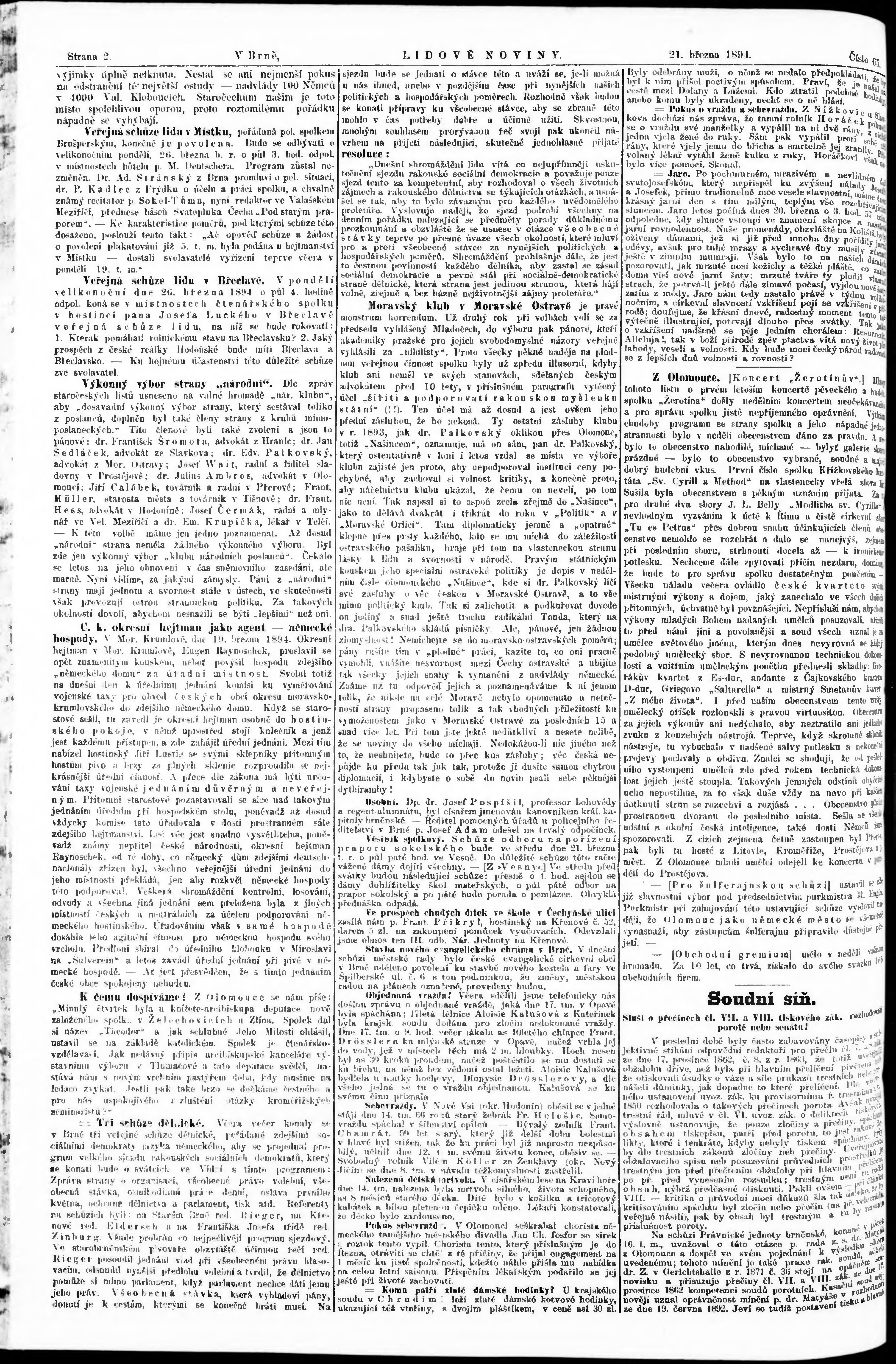 * Datum vydání výtisku: 21.3.1894 Číslo výtisku: 65 Poznámky k výtisku: poškozená předloha;