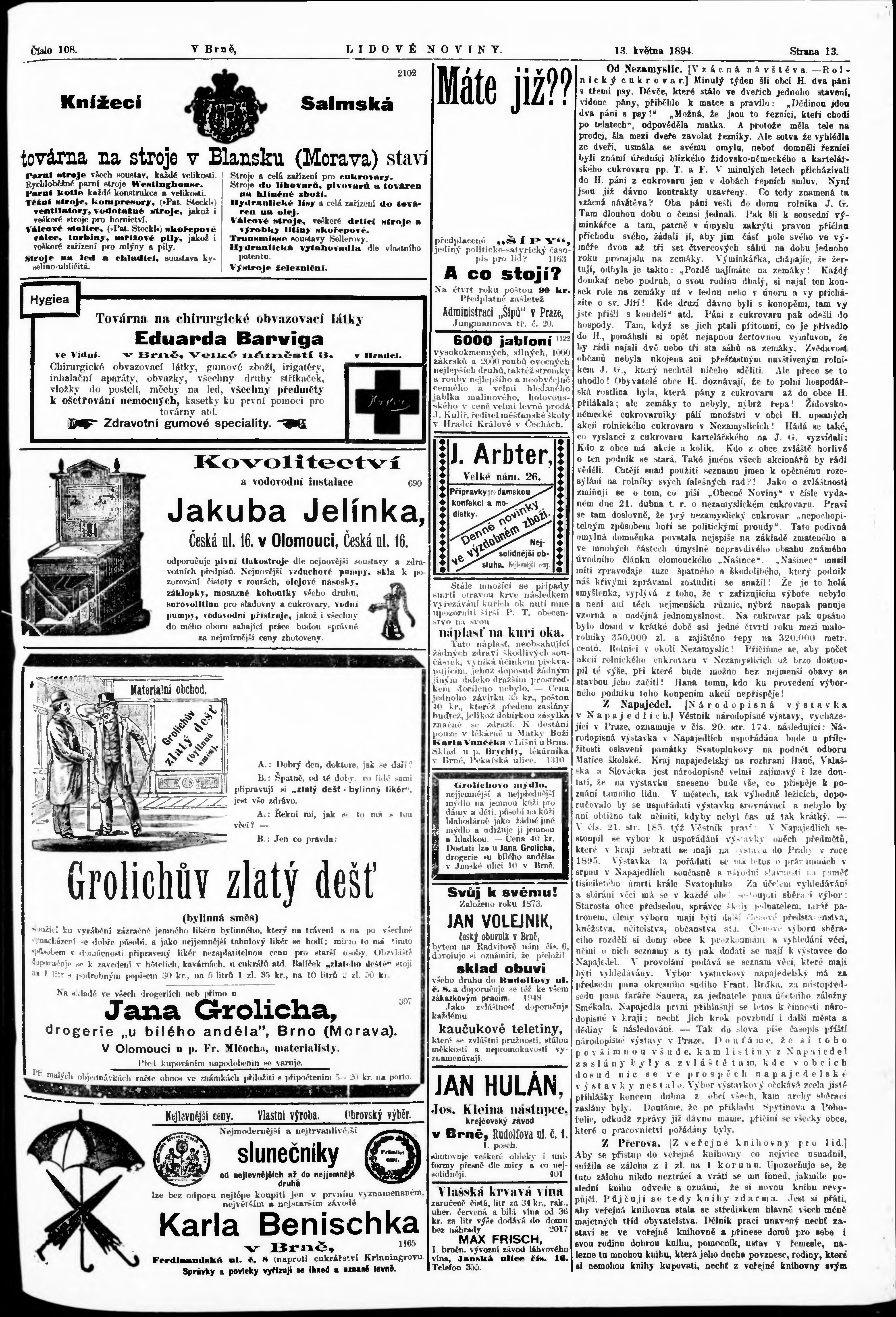* Datum vydání výtisku: 13.5.1894 Číslo výtisku: 108 Poznámky k výtisku: nekvalitní a poškozená předloha;