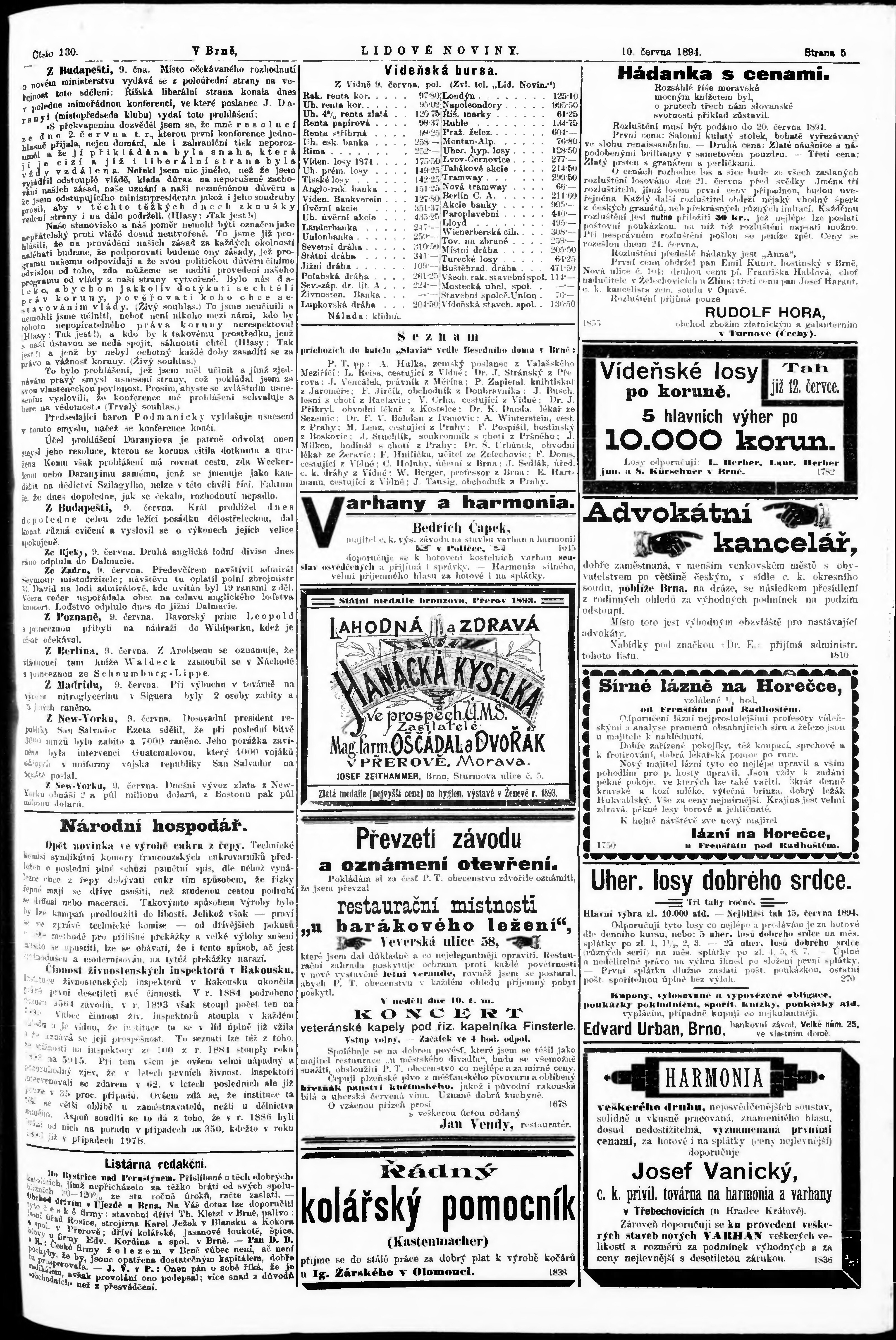 * Datum vydání výtisku: 10.6.1894 Číslo výtisku: 130 Poznámky k výtisku: poškozená předloha;