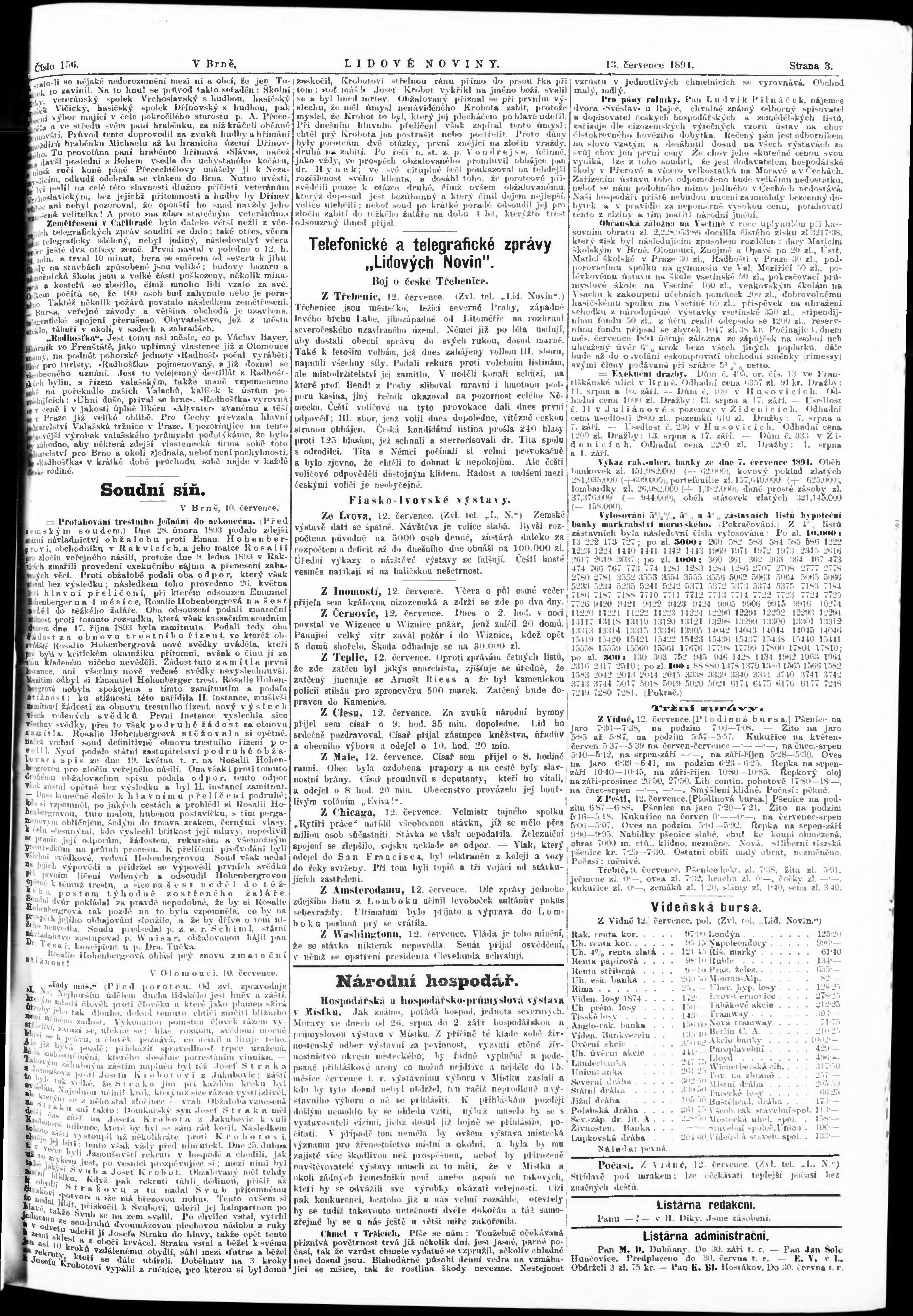 * Datum vydání výtisku: 13.7.1894 Číslo výtisku: 156 Poznámky k výtisku: poškozená předloha;