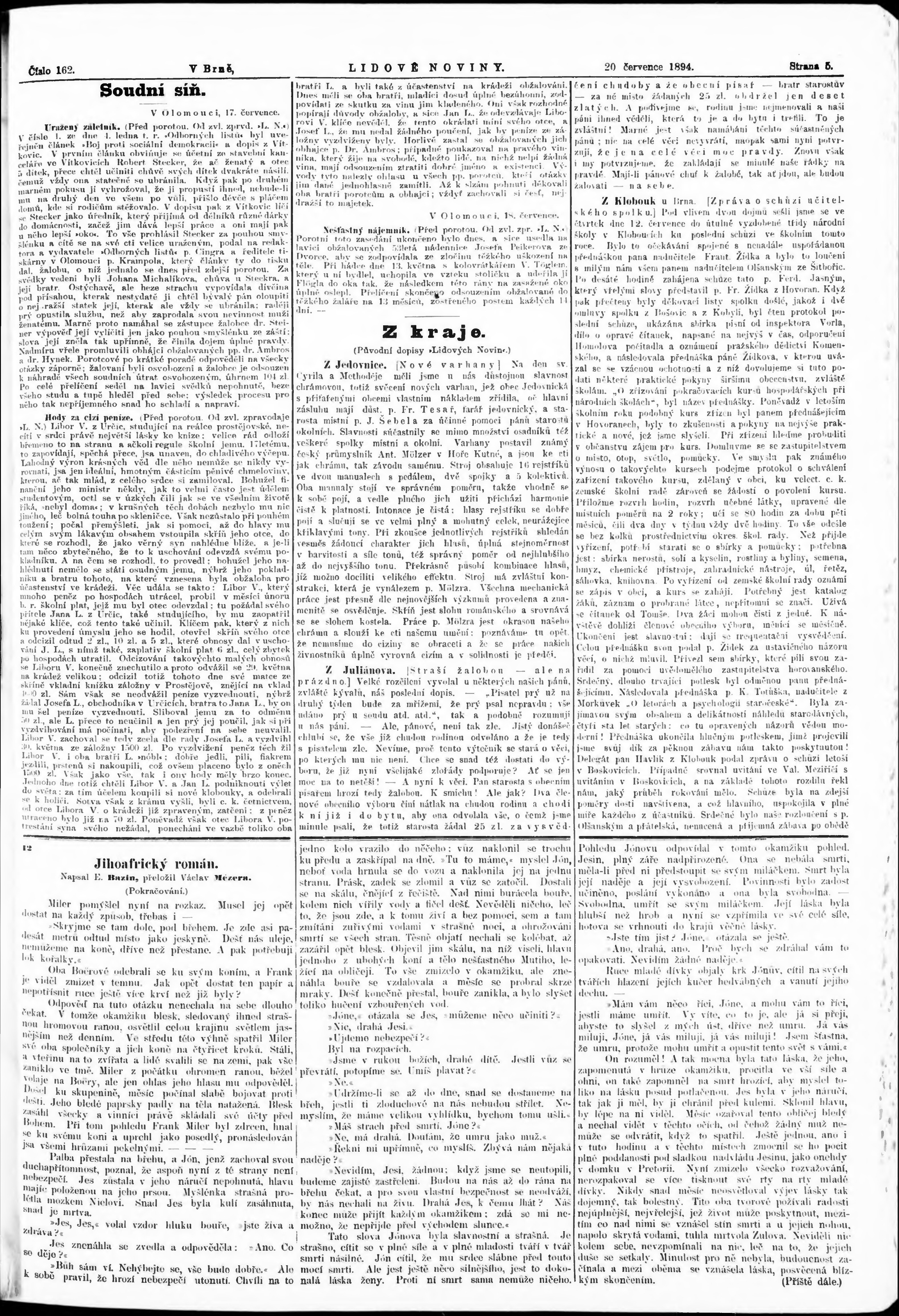 * Datum vydání výtisku: 20.7.1894 Číslo výtisku: 162
