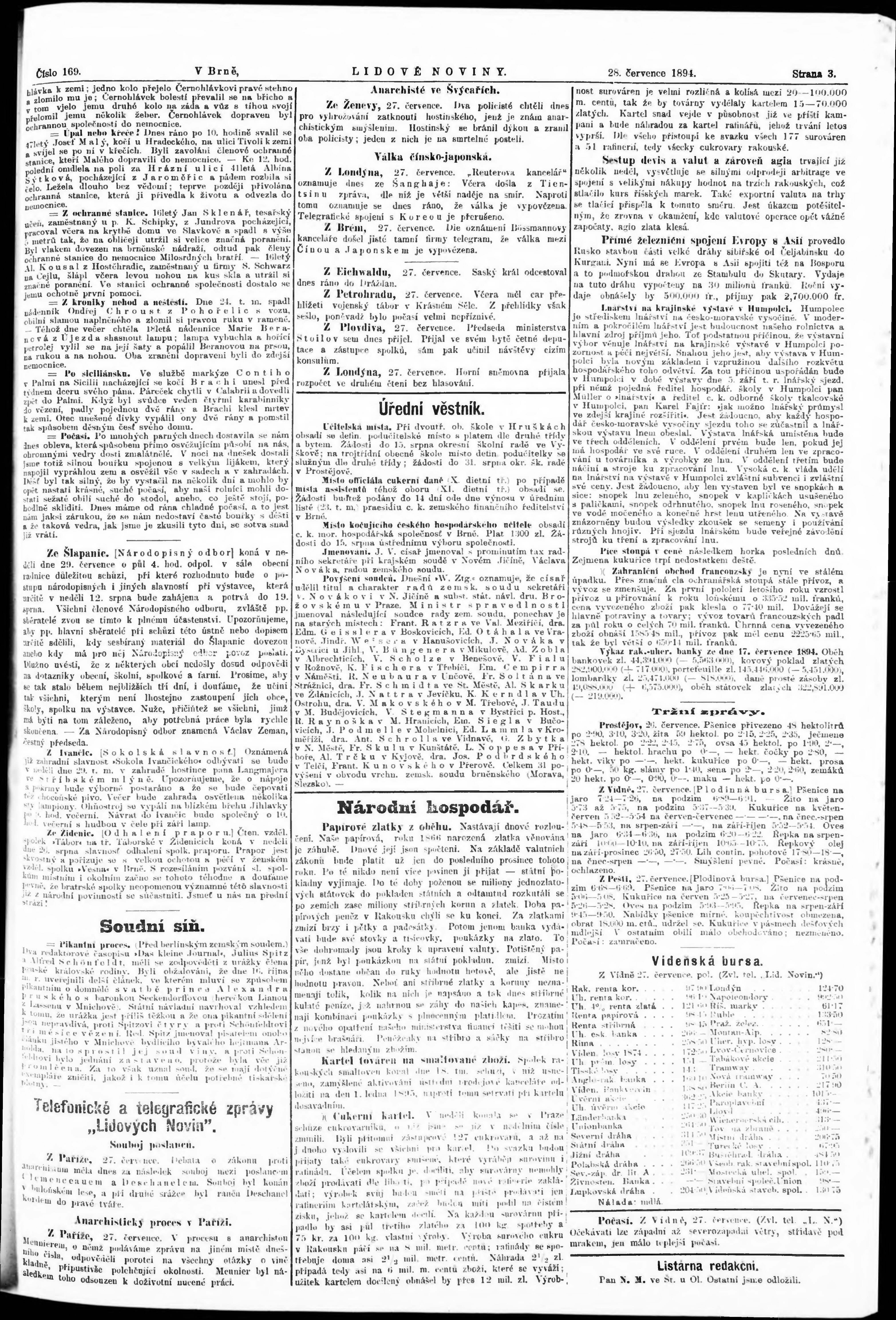 * Datum vydání výtisku: 28.7.1894 Číslo výtisku: 169 Poznámky k výtisku: poškozená předloha;