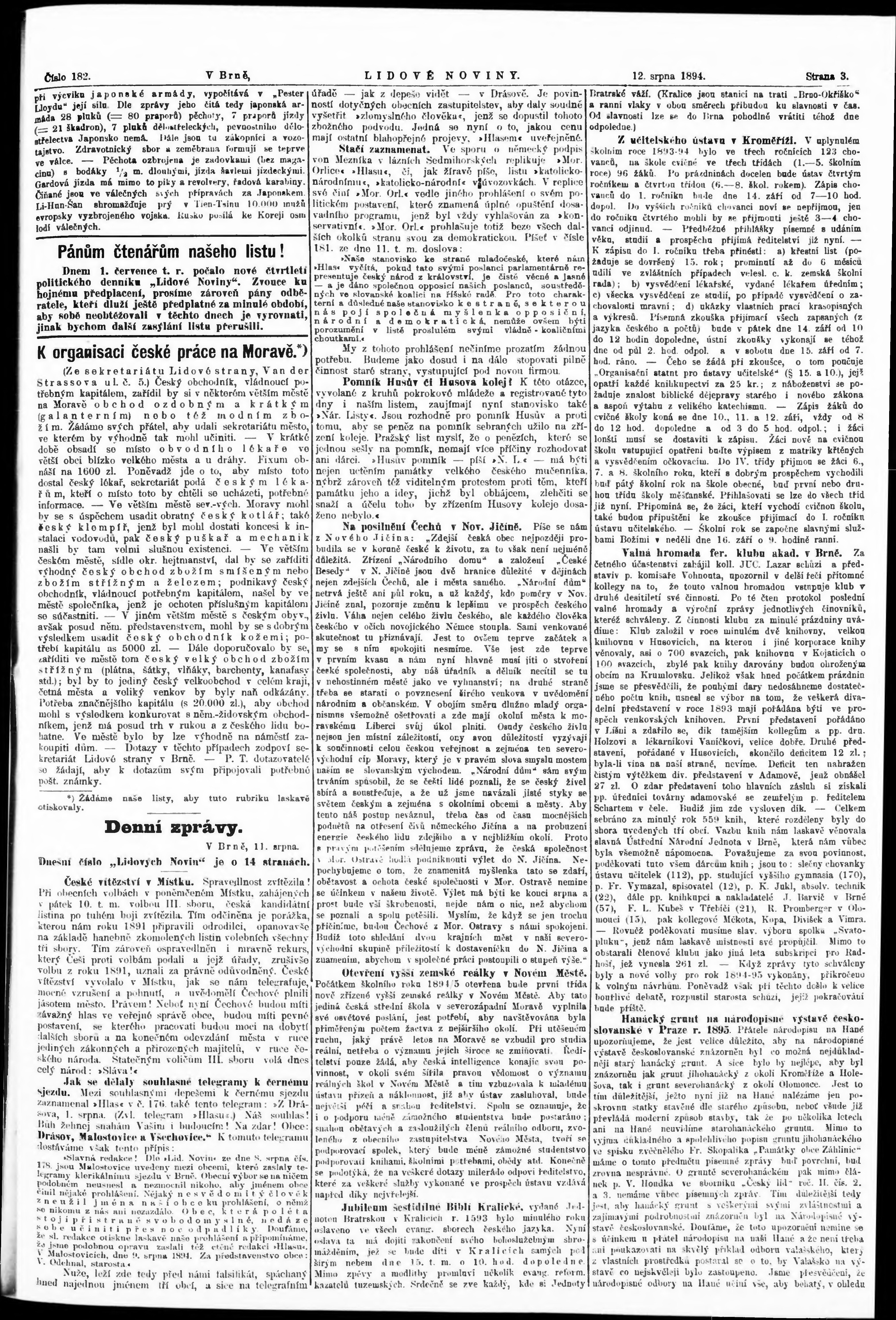 * Datum vydání výtisku: 12.8.1894 Číslo výtisku: 182 Poznámky k výtisku: nekvalitní předloha;