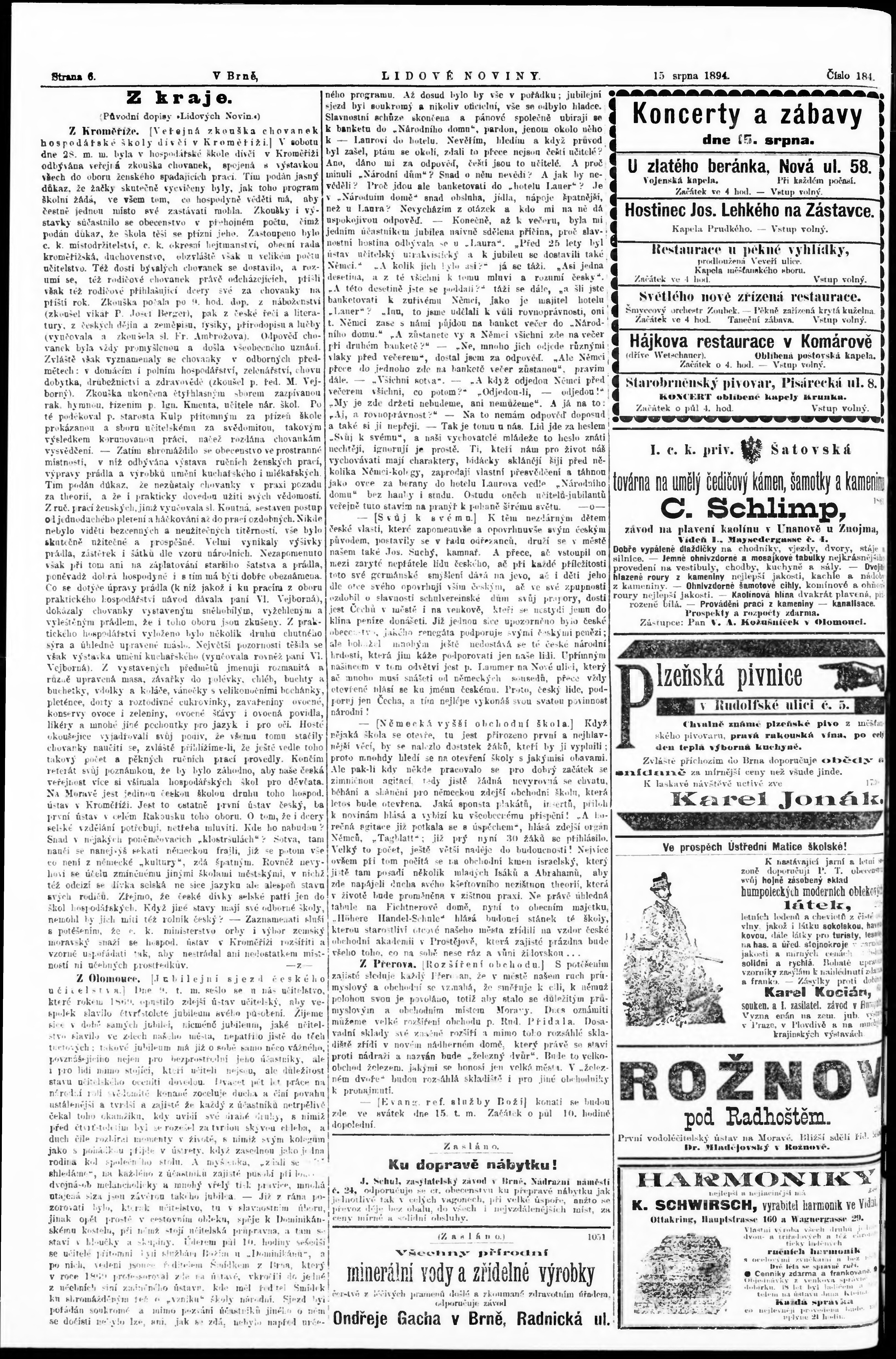 * Datum vydání výtisku: 15.8.1894 Číslo výtisku: 184