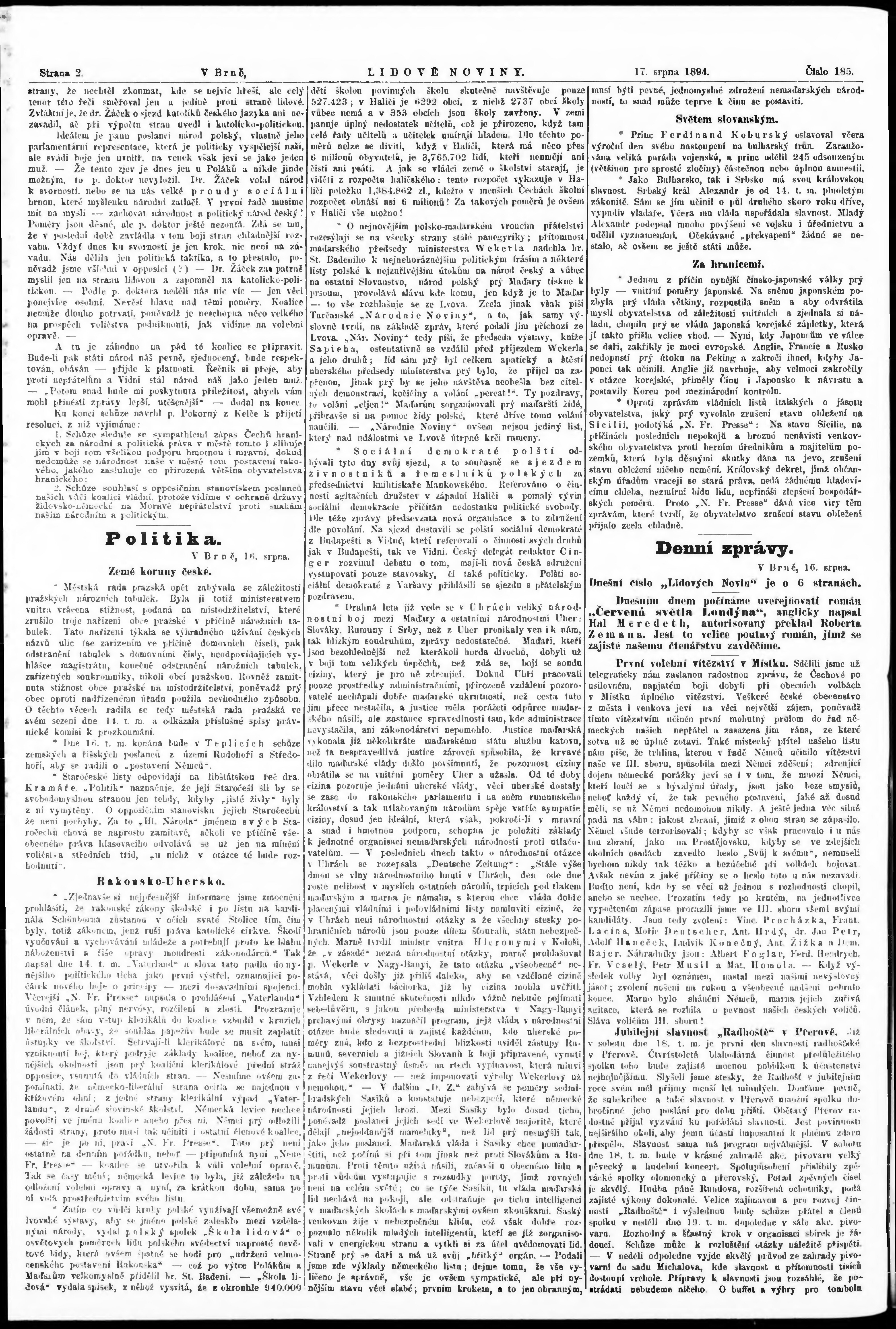 * Datum vydání výtisku: 17.8.1894 Číslo výtisku: 185