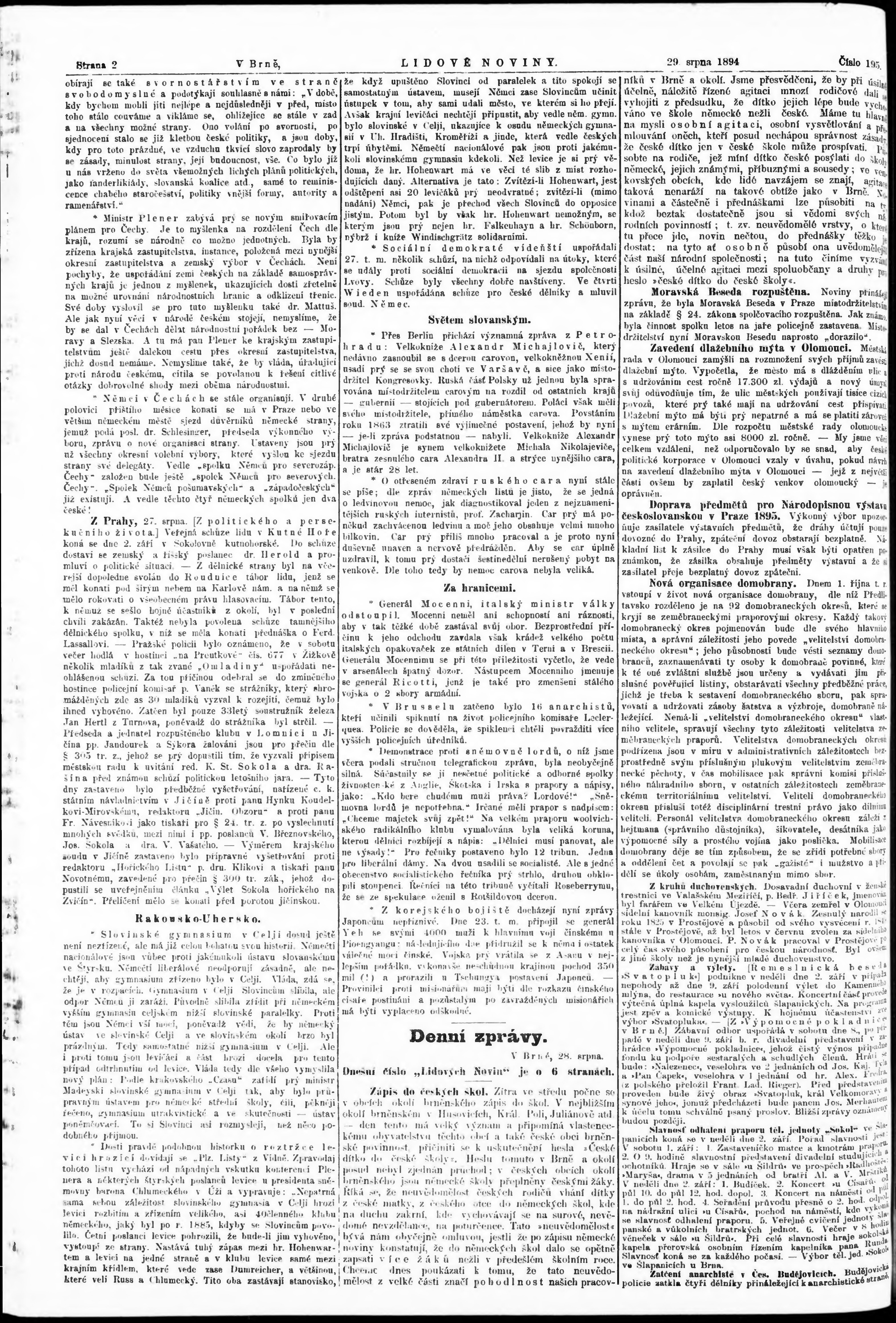 * Datum vydání výtisku: 29.8.1894 Číslo výtisku: 195 Poznámky k výtisku: nekvalitní předloha;