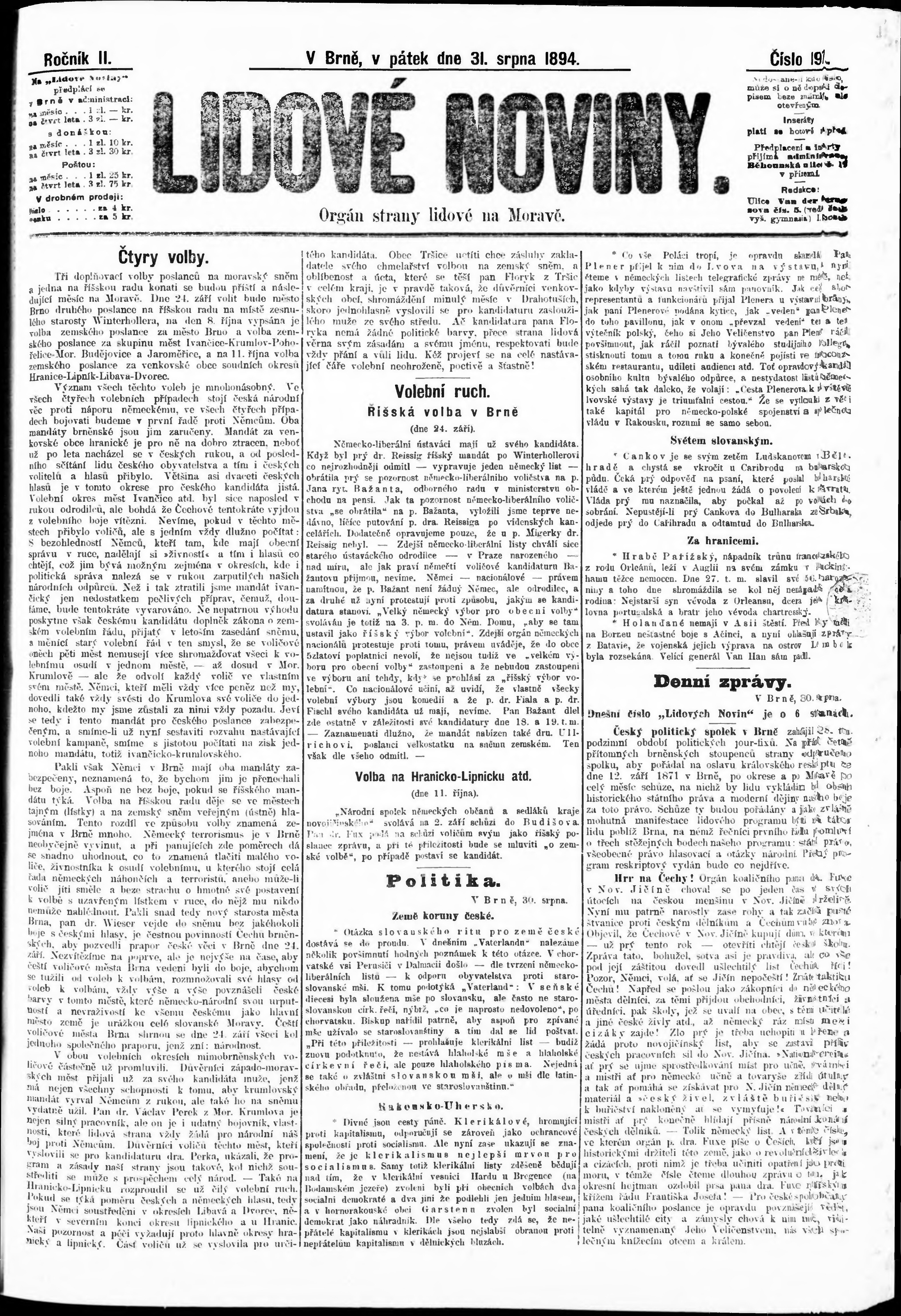 * Datum vydání výtisku: 31.8.1894 Číslo výtisku: 197 Poznámky k výtisku: nekvalitní předloha;