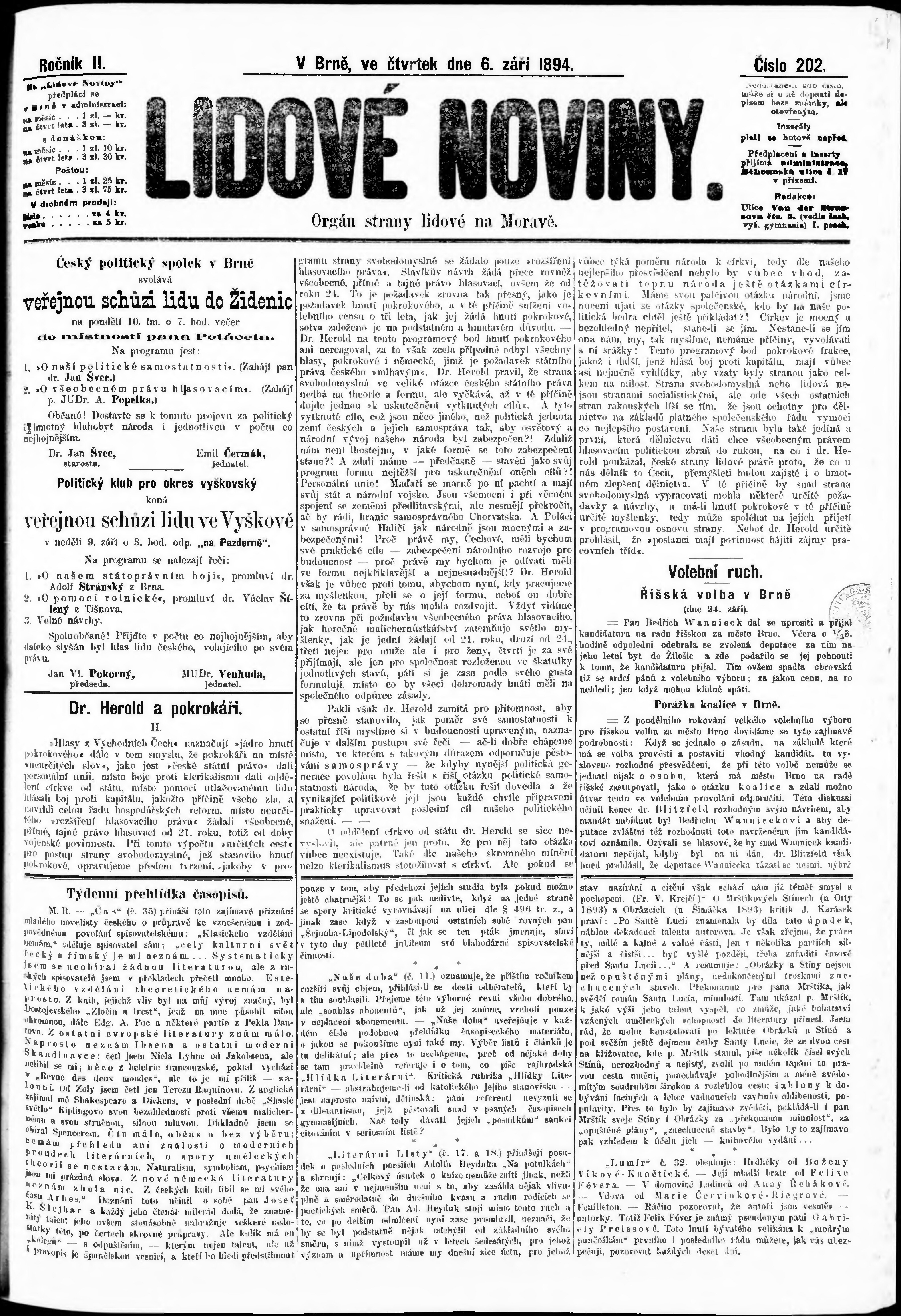* Datum vydání výtisku: 6.9.1894 Číslo výtisku: 202 Poznámky k výtisku: nekvalitní předloha;