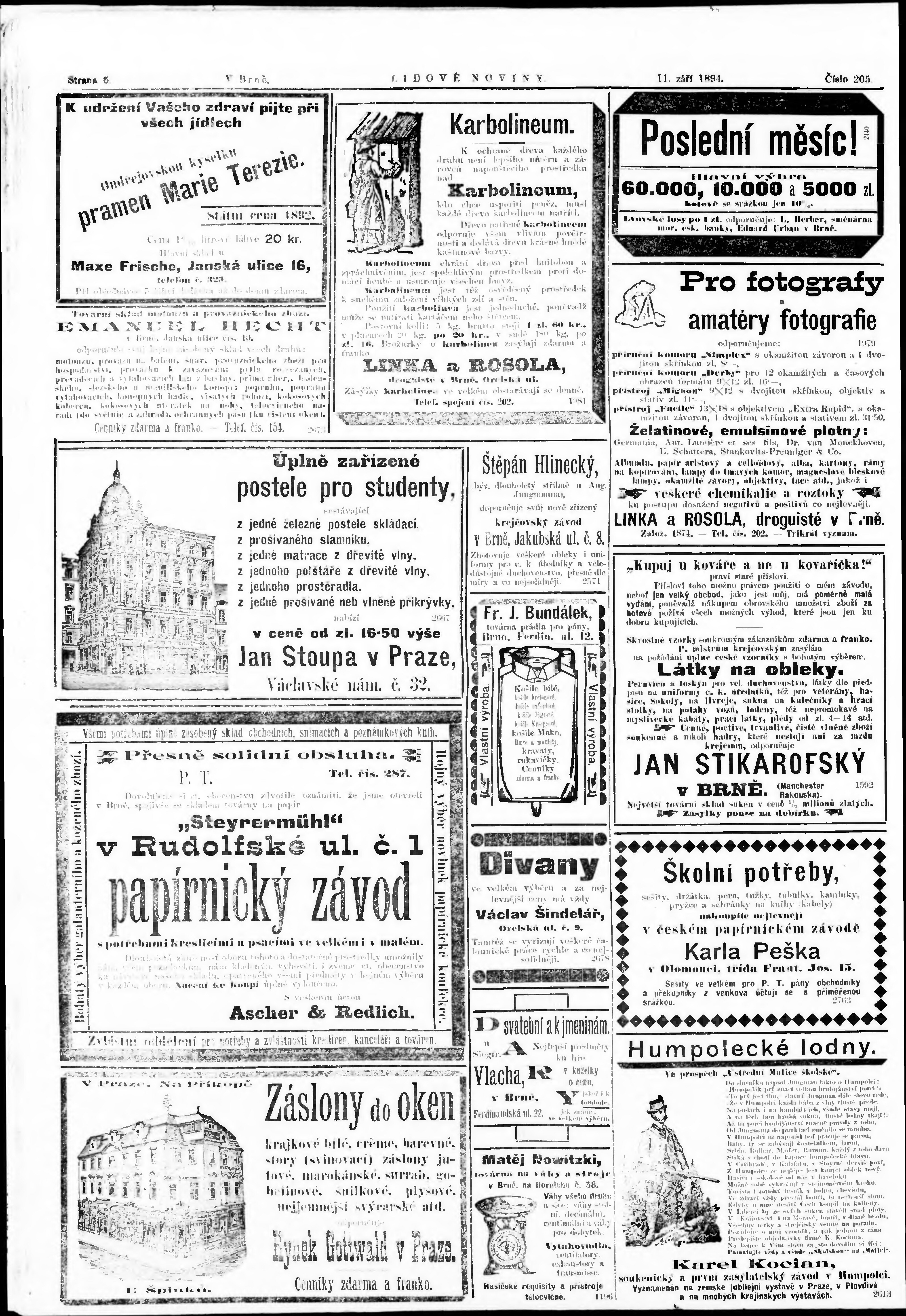 * Datum vydání výtisku: 11.9.1894 Číslo výtisku: 205 Poznámky k výtisku: nekvalitní předloha;