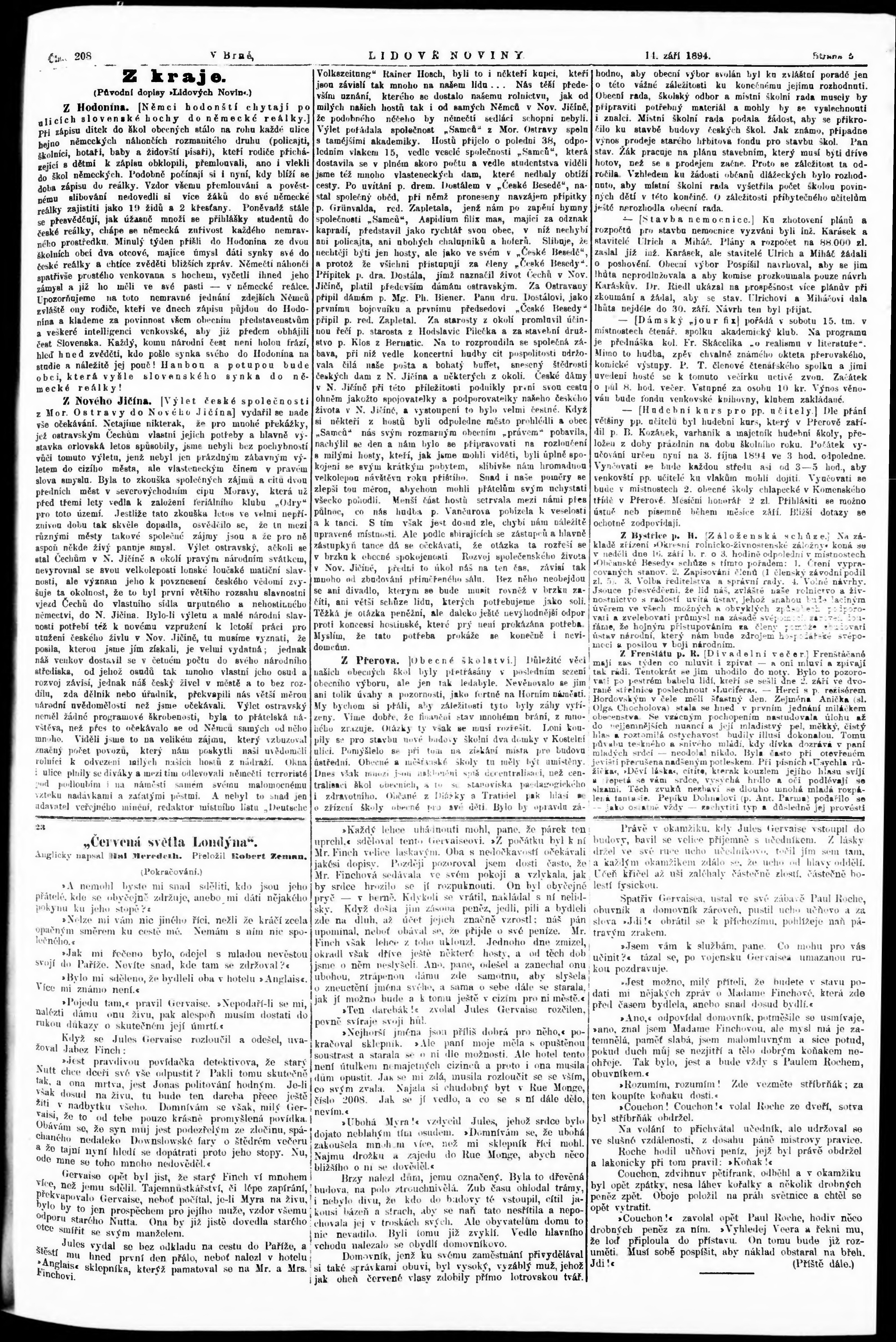 * Datum vydání výtisku: 14.9.1894 Číslo výtisku: 208 Poznámky k výtisku: poškozená předloha;