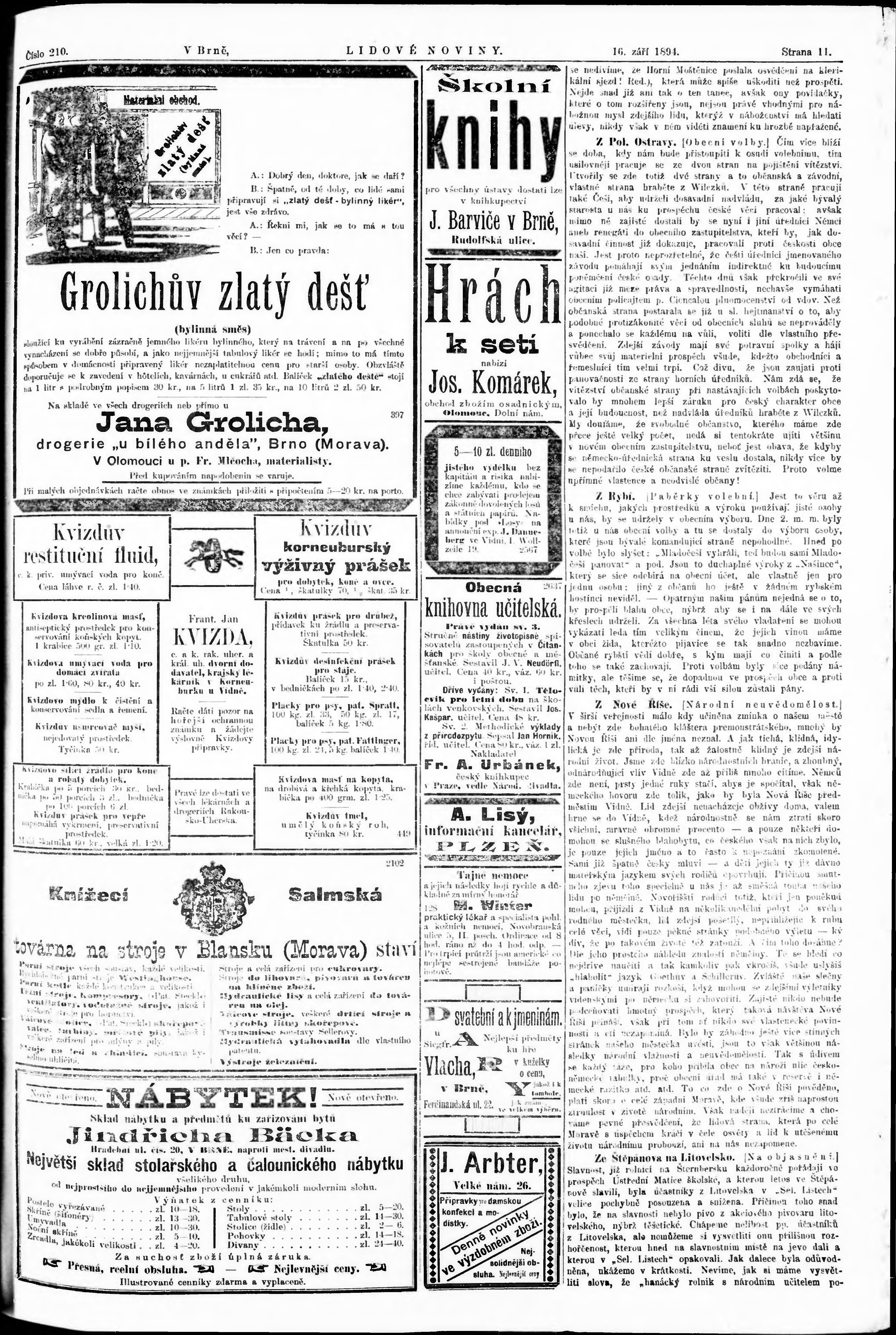 * Datum vydání výtisku: 16.9.1894 Číslo výtisku: 210 Poznámky k výtisku: poškozená předloha;