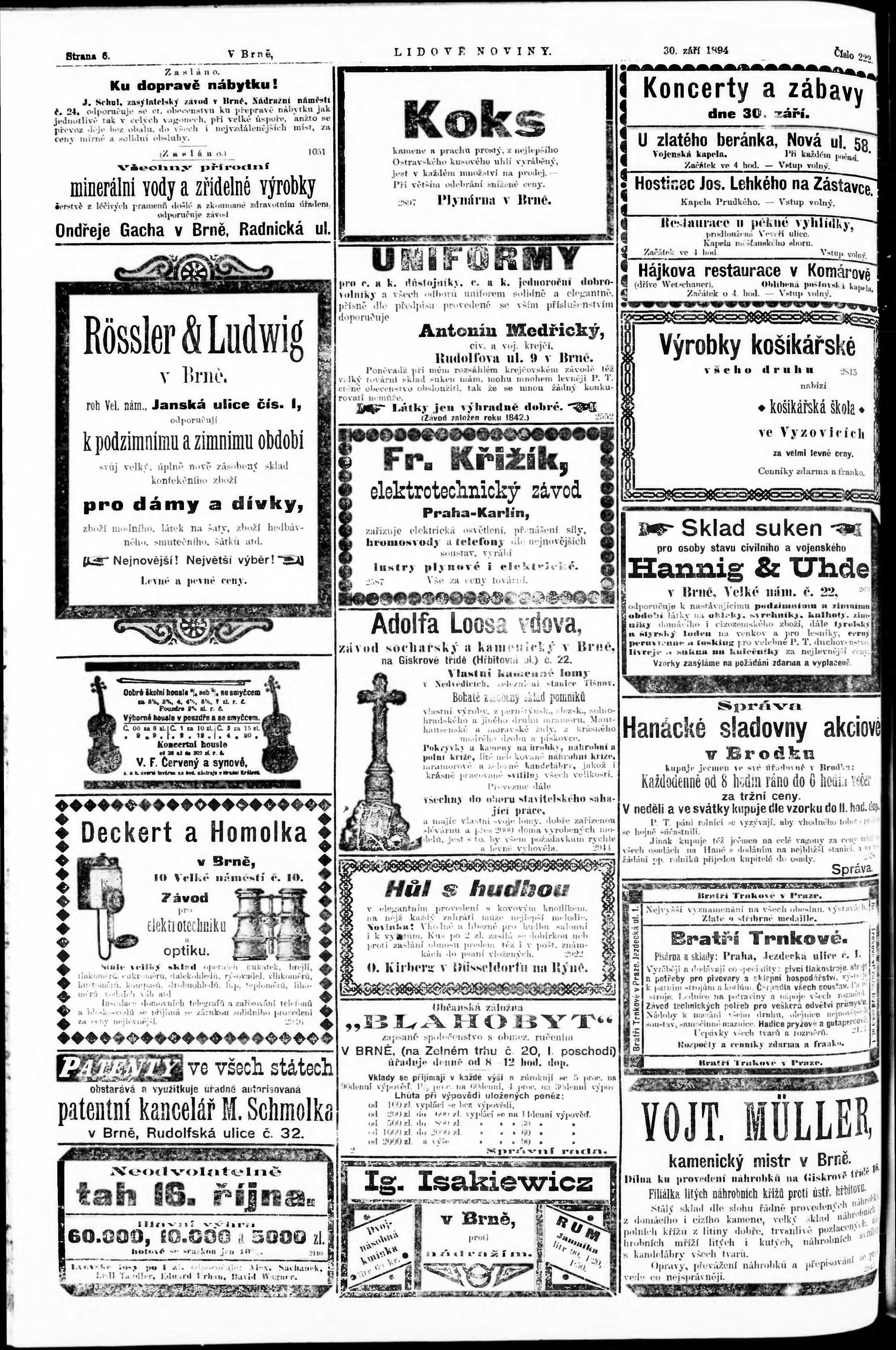 * Datum vydání výtisku: 30.9.1894 Číslo výtisku: 222