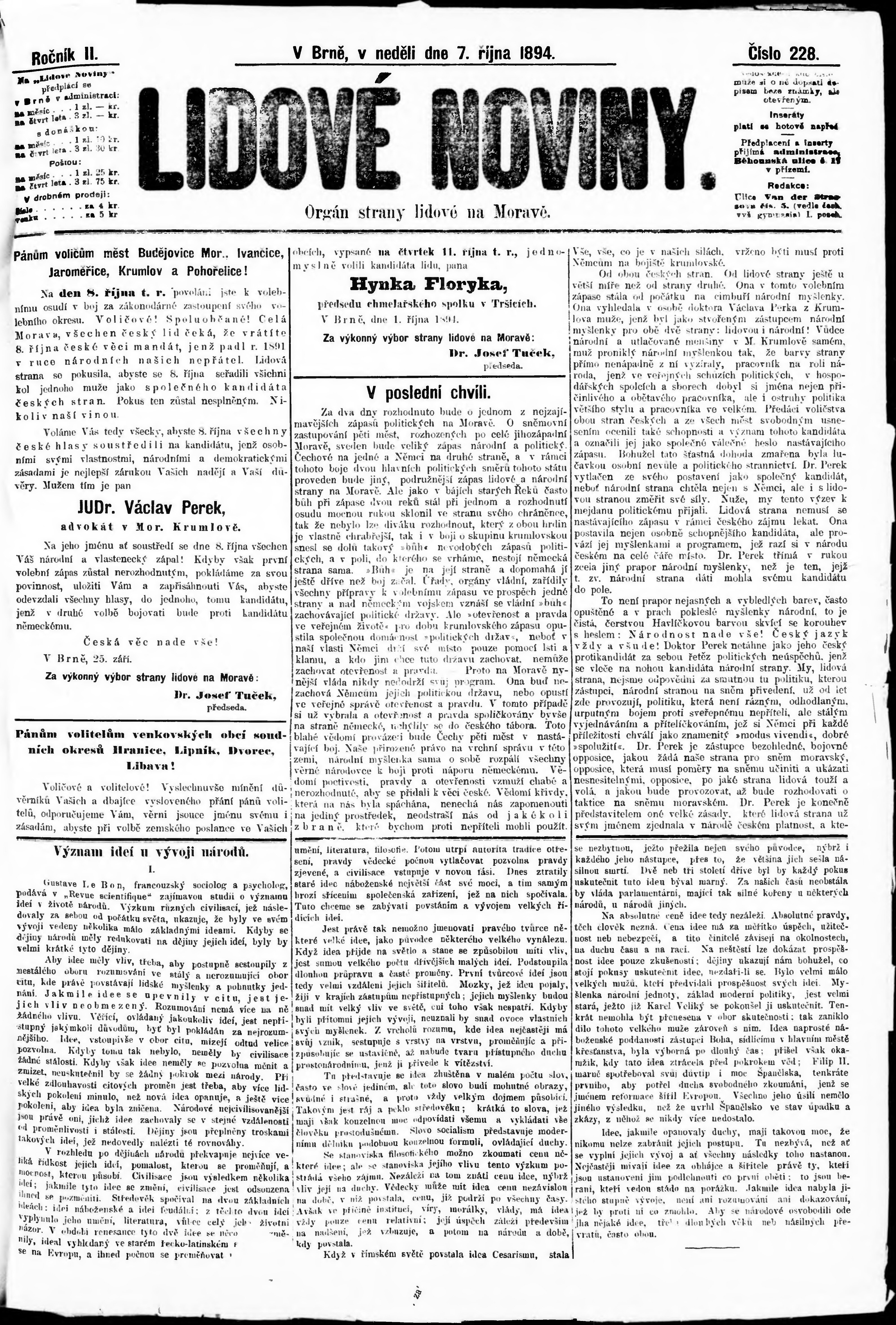 * Datum vydání výtisku: 7.10.1894 Číslo výtisku: 228 Poznámky k výtisku: s. 13 není k dispozici; poškozená předloha;